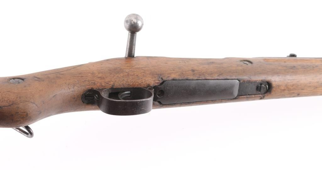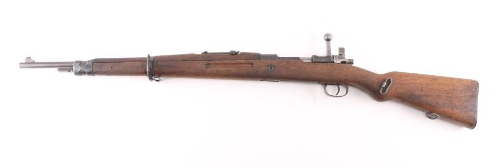 Chinese contract Czechoslovakian military bolt action service rifle, manufactured in Brno by Ceskoslovenská zbrojovka circa 1924 - 1942. Features blued refinish, 23" barrel, dovetailed inverted ‘v’ front sight, tangent rear sight graduated to 2,000 meters, bayonet lug, bottom & side mounted sling swivels, 5 round internal box magazine, straight bolt handle, three-position flag safety on the rear of the bolt, smooth wood handguard and semi-pistol grip shoulder stock with grasping grooves in the forend & smooth metal buttplate. Observed numbers do not match. There is what appears to be Arabic/Farsi numbers on the bolt. Standard Czech markings (faint). Imported from China by CAI (Barrel) Bore is fair to good, with strong rifling. Rifle retains 60% finish, turning brown or gray in many places, bare metal showing on edges & corners and where parts rub during operation, scattered light pinprick patina across receiver. Wood is very good condition overall, many small dents & scratches. No cleaning rod. Condition is NRA Good. C&R Firearm.