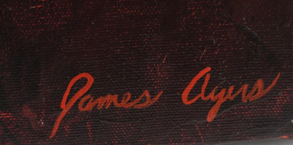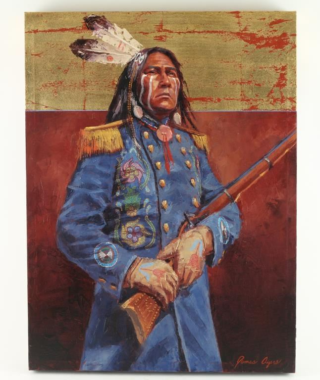 Beautifully wrapped canvas by "James Ayer" signed lower right, unframed measuring 24x18. Bio-James Ayers of Flagstaff, Arizona paints Native American figures and portraits to recapture lost cultures. The artist combines historical research, live models and his own personal experiences of traveling and living with indigenous people in North America and Africa in his paintings.