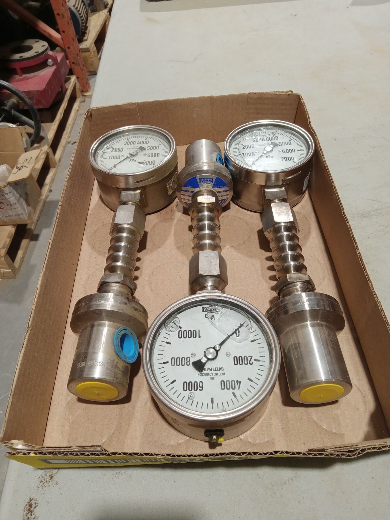 THREE WIKA OIL FILLED PRESSURE GUAGES. TWO: 7,000 PSI AND ONE: 10,000 PSI