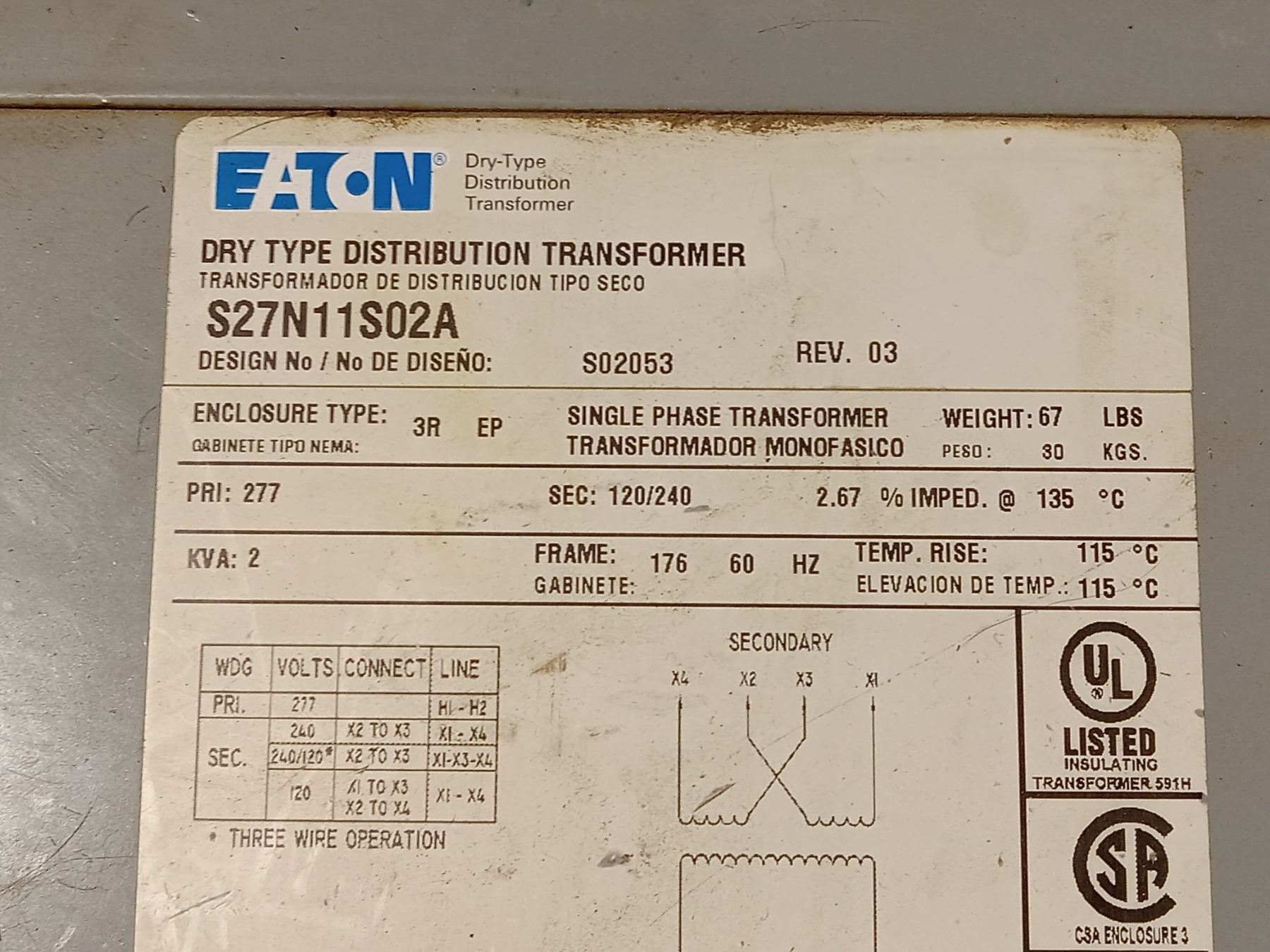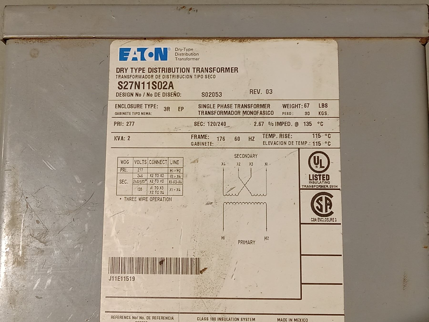 EATON DISTRIBUTION TRANSFORMER S27N115N02A