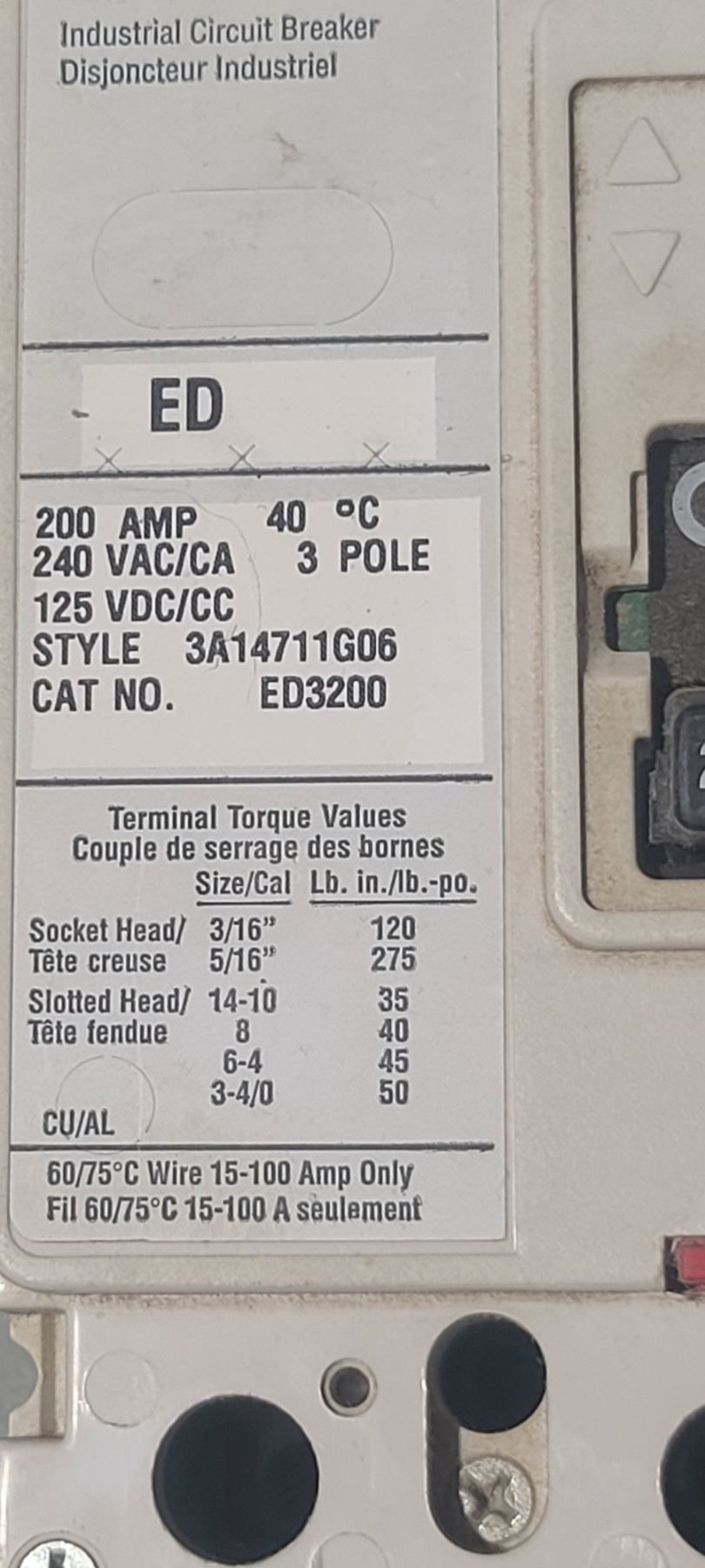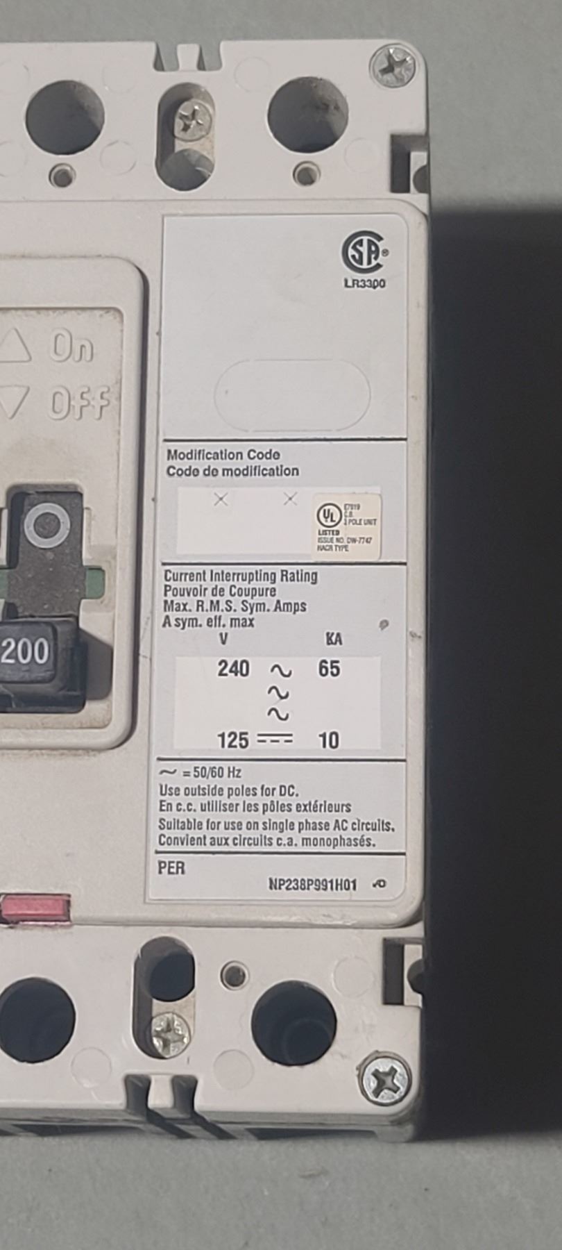 Lot 155 EATON 250AMP CURCUIT BREAKER