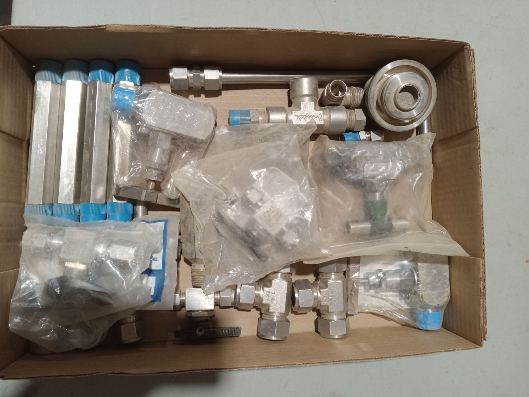 Lot 181 BOX OF SWAGELOCK VALVES AND PARTS