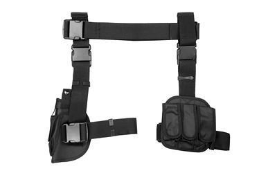 NCSTAR, Drop Leg Holster & Mag Pouch, Triple Magazine Pouch, Right Hand, Black, Nylon