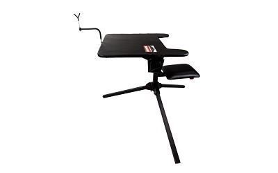 Experience unlimited shooting lanes with this 360 swivel action seat and bench top. 12"W X 14"D X 2" thick seat provides ultimate comfort, while the 29" square bench top with extended arm rests and padded vinyl cover provide all day comfort while shooting. Two shell/gear pouches are an added feature with an adjustable, coated gun-rest to accommodate any hunter. Weight rating is 300lbs. and the bench weighs 38lbs.