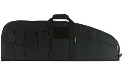 The Combat Tactical Rifle Case from Allen Tactical fits tactical rifles with or without scopes. Features four magazine pockets with hook and loop closures, plus a large zippered accessory pocket that fits targets, gloves, ammo, and other accessories. A large 5.25" x 4.25" hook and loop patch is perfect for adding morale and name patches. The exterior of the case is constructed from heavy-duty Endura fabric, and the inside of the case has a soft knit lining and thick foam padding to protect your firearm. Includes durable web handles with a padded handle grip. Lockable.
