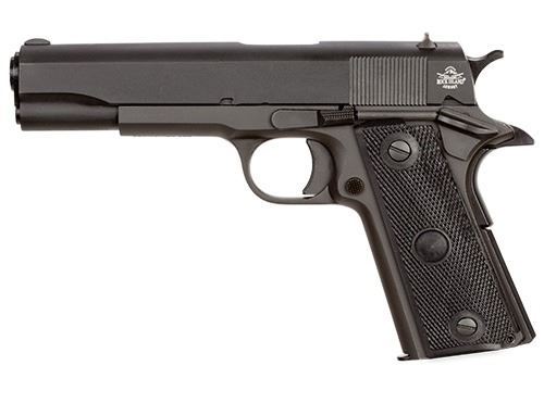 The M 1911 GI standard is a great representation of the original US GI combat issue 1911. It's chambered in 9mm and built with our exacting engineering standards. Fixed, low profile sights and traditional smooth slim design are perfect for quick pull holster use. A durable parkerized finish gives it a tough, smooth non-reflective surface. The 5" barrel offers a balanced weight to assist with the accuracy and recoil that made the original 1911 design famous. True to all Rock Island 1911s, the GI Standard comes with a crisp factory 4- to 6-pound trigger to make it a great experience right out of the box.