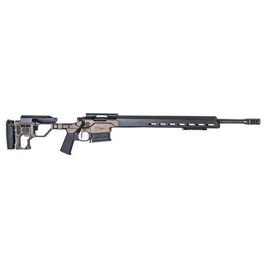 The Modern Precision Rifle is an ultra-lightweight chassis rifle designed to break with tradition. Beyond the folding stock the complete package is well equipped with a target contour Christensen Arms carbon fiber barrel, carbon fiber comb, free-floating carbon fiber handguard, and 20 MOA rail. The action and stainless steel side-baffle muzzle brake are finished in Black Nitride for a sleek look. The Modern Precision Rifle weighs in starting at 6.9 pounds and is backed by the Christensen Arms Sub-MOA Guarantee.