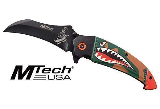 Lot 283 MC MTECH 3.5" FOLDER HAWKBILL BLADE SHARK/BOMB BLACK