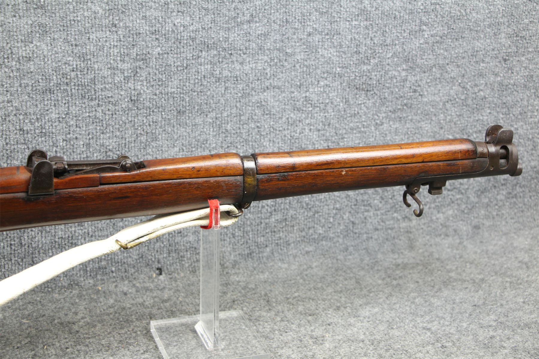 Unaltered condition. Mk III. Stock has been refinished. Metal may have been refinished as well. Stock has a crack in the fore-stock ahead of the receiver left side. Some gouges in the butt-stock. No rust.