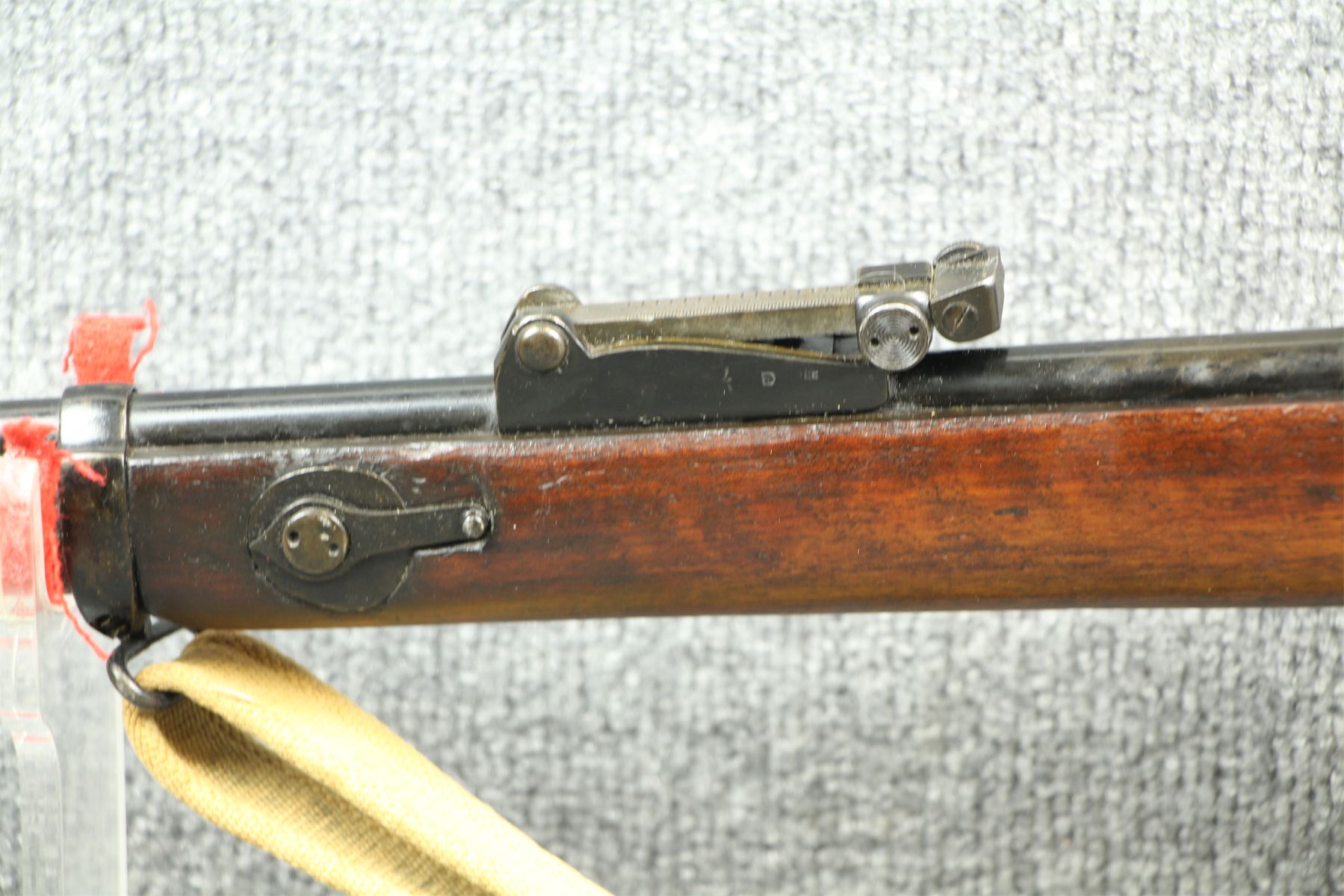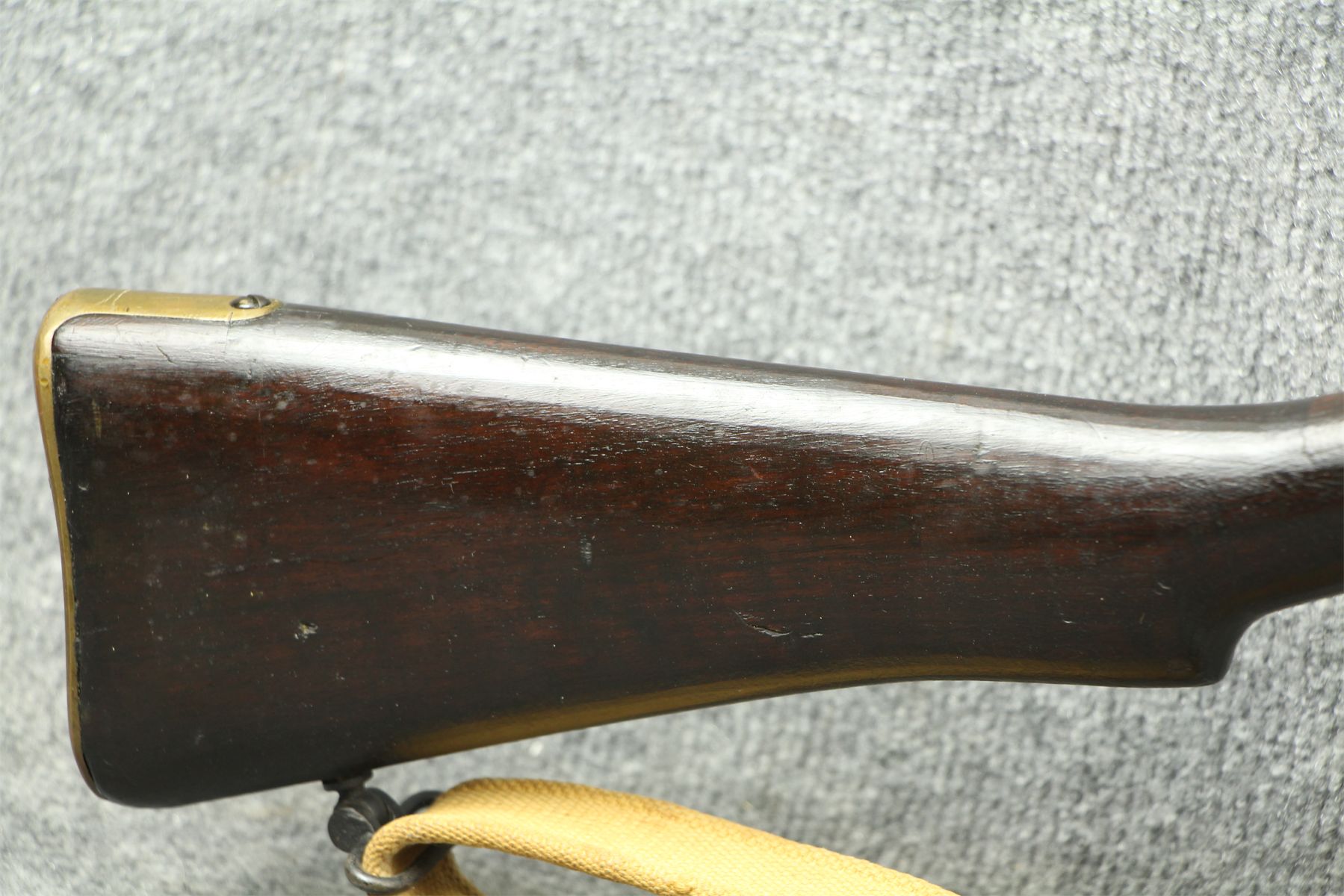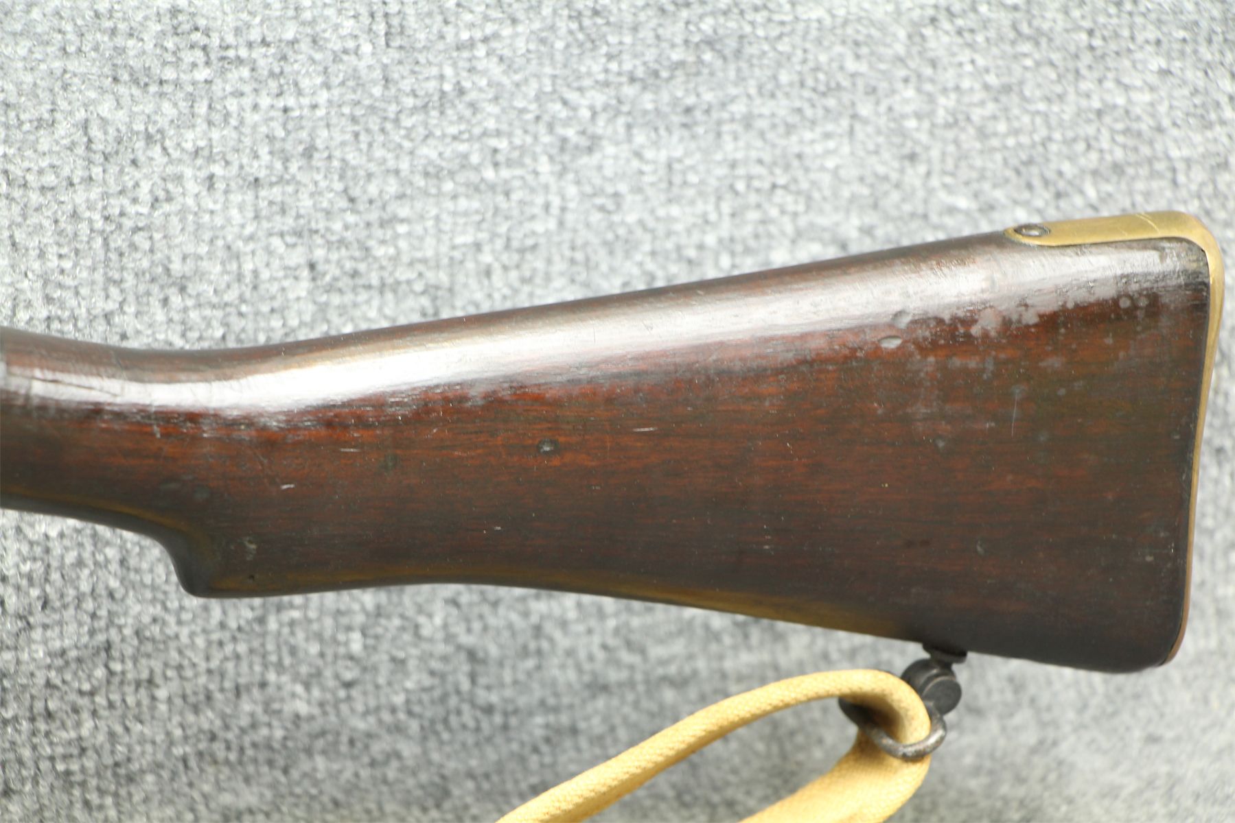 Made by London Small Arms. Someone has put a coating on the metal. Complete with regular and volley sights. No rust. A few handling marks.