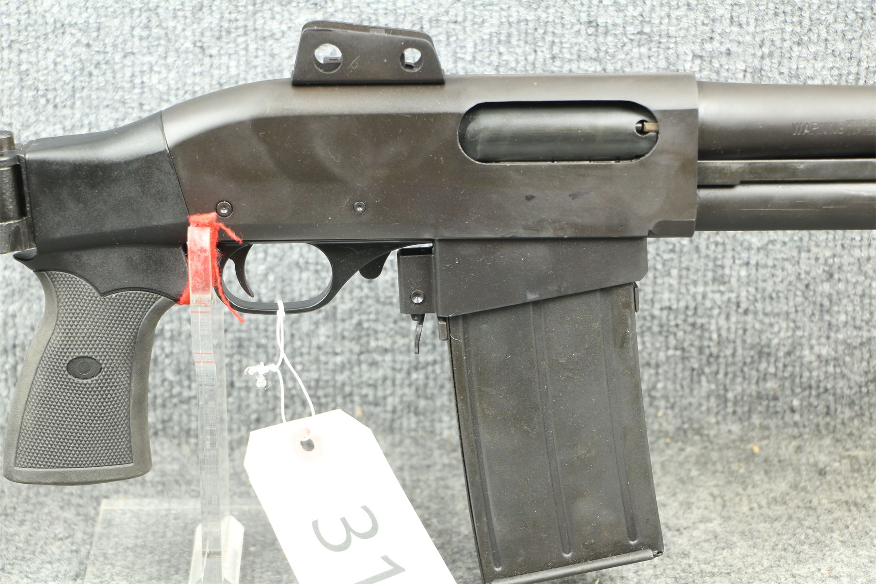 Mag fed slug gun. Rifle sights. Some very minor nicks in the finish.