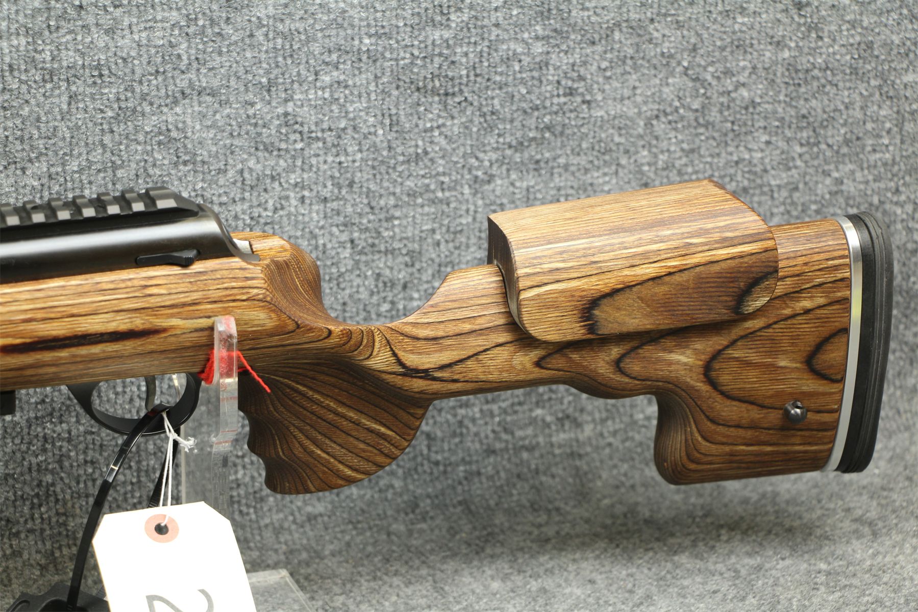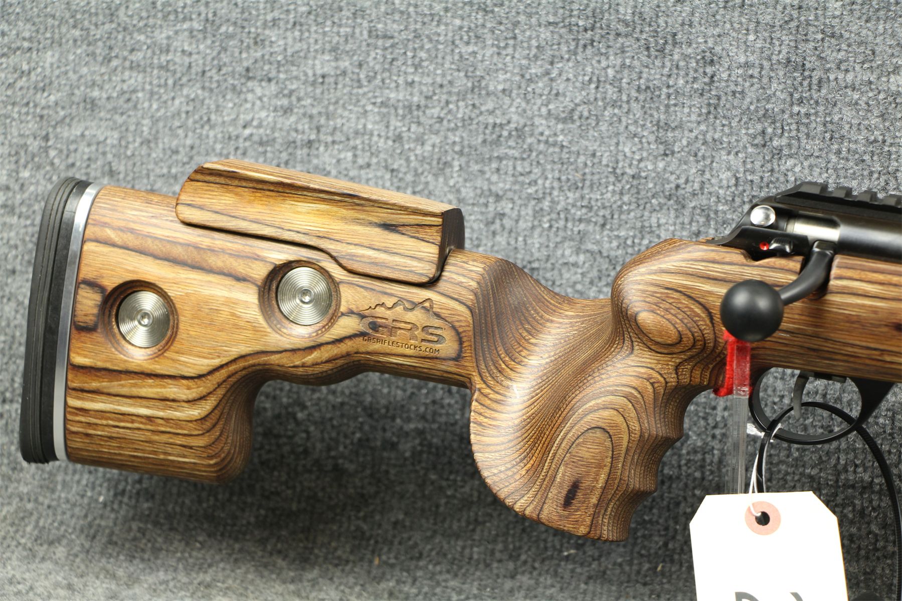 This is a tack driver. GRS Sporter stock. Fully adjustable monte carlo laminated stock. Ergonomic carved hand grip. Adjustable trigger. Floating barrel. Comes with regular box mag and a single shot mag. Picatinny rail. Only a tiny nic in the stock inside the pistol grip.