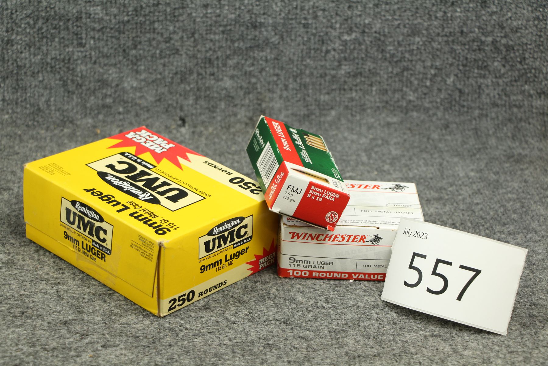 1 box x 50 Sellier and Bellot 115 gr. FMJ. 1 box x 100 Winchester 115 gr. FMJ. 1 box Remington 180 rds.