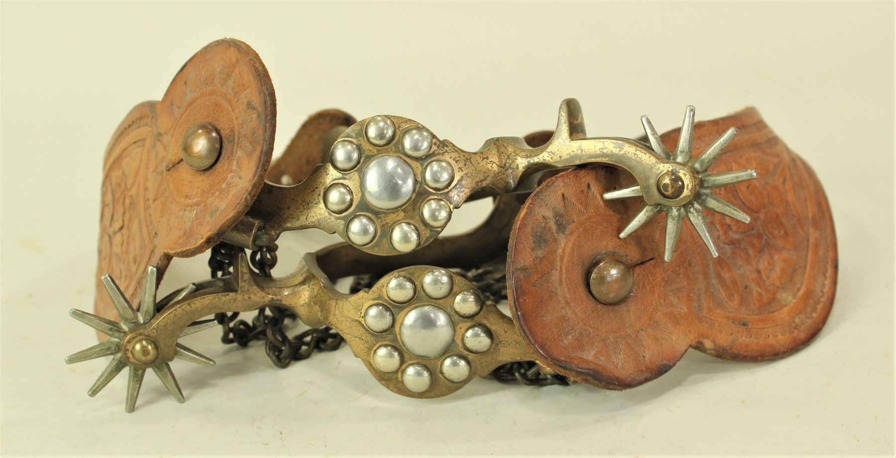 A hard to find pattern of Hercules bronze spurs, with fine condition and original straps, and nice maker's mark.