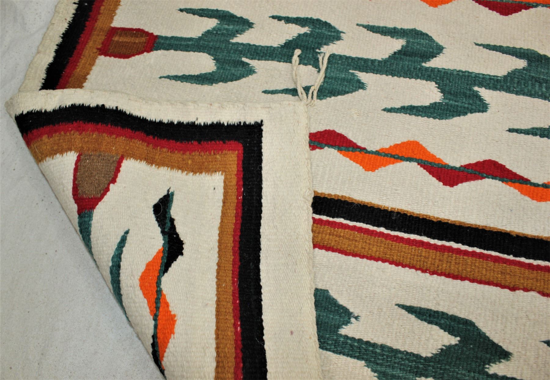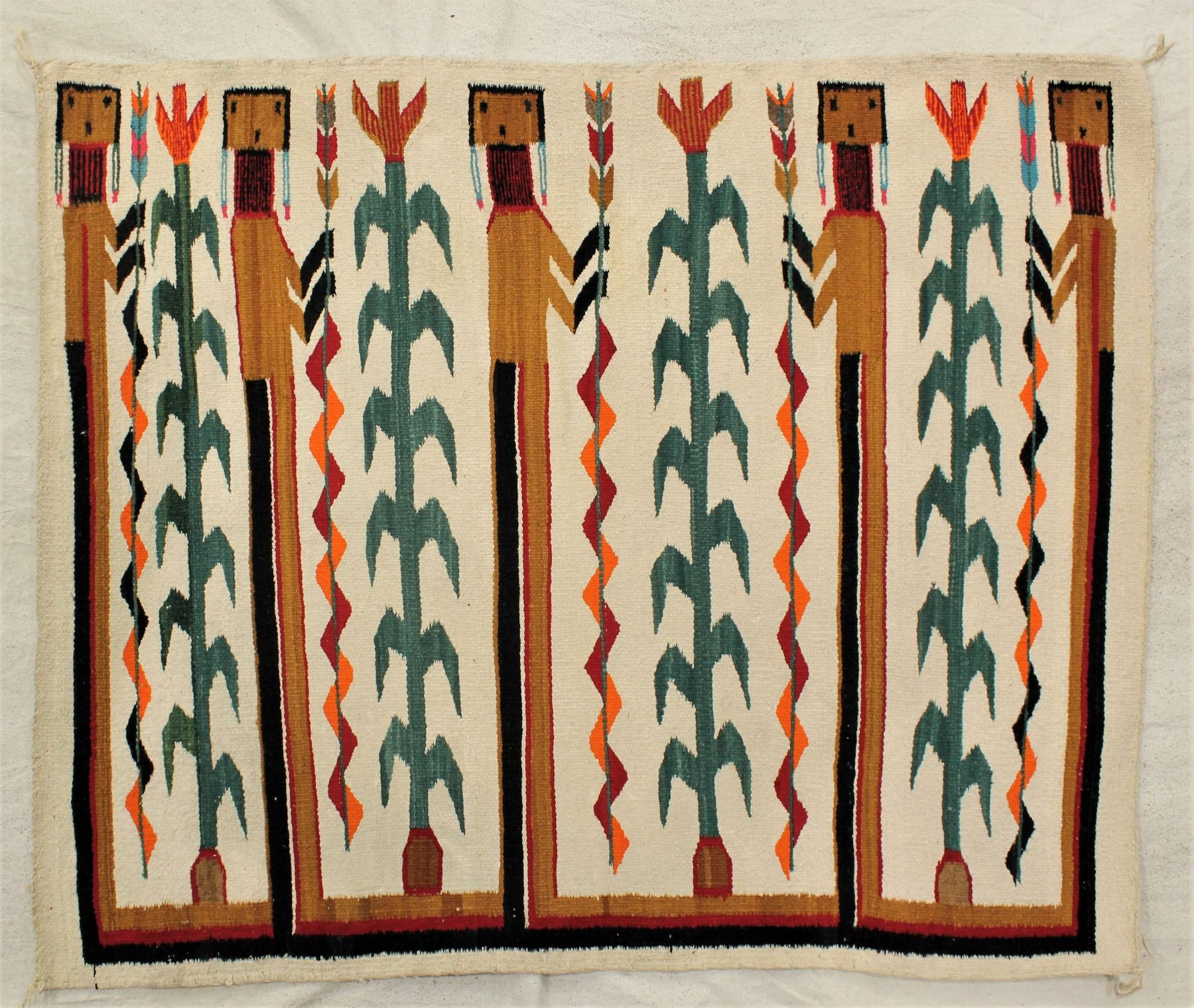 A dazzling Corn Yei style rug with bold colors, measures 43"x 35", circa 1930.
