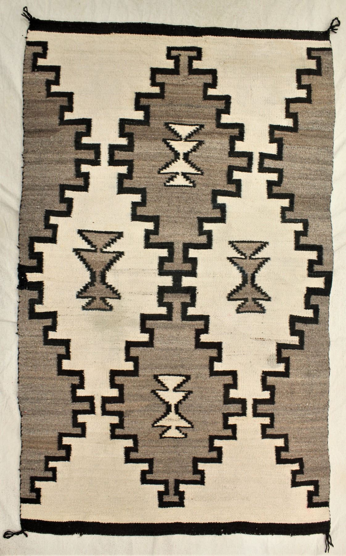 Bright colored large rug with a terrific serrated Crystal pattern, in excellent condition, measures 42"x 70", circa 1920's.