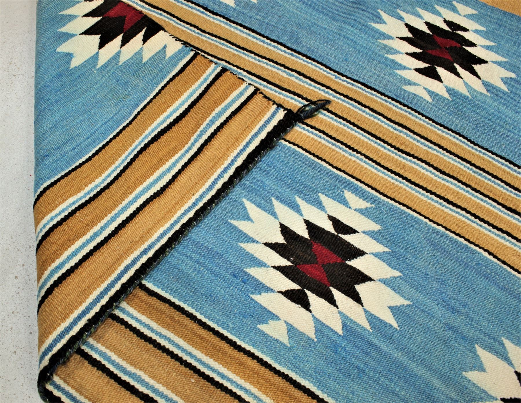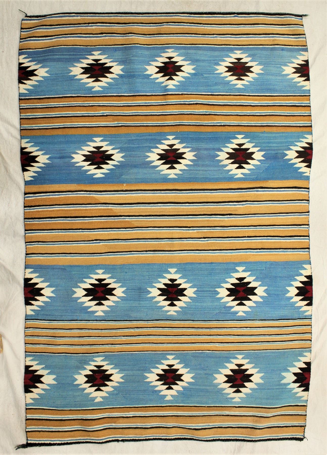 Uncommon large banded rug with attractive blue background, in excellent condition, dimensions 53"x80", circa 1930.