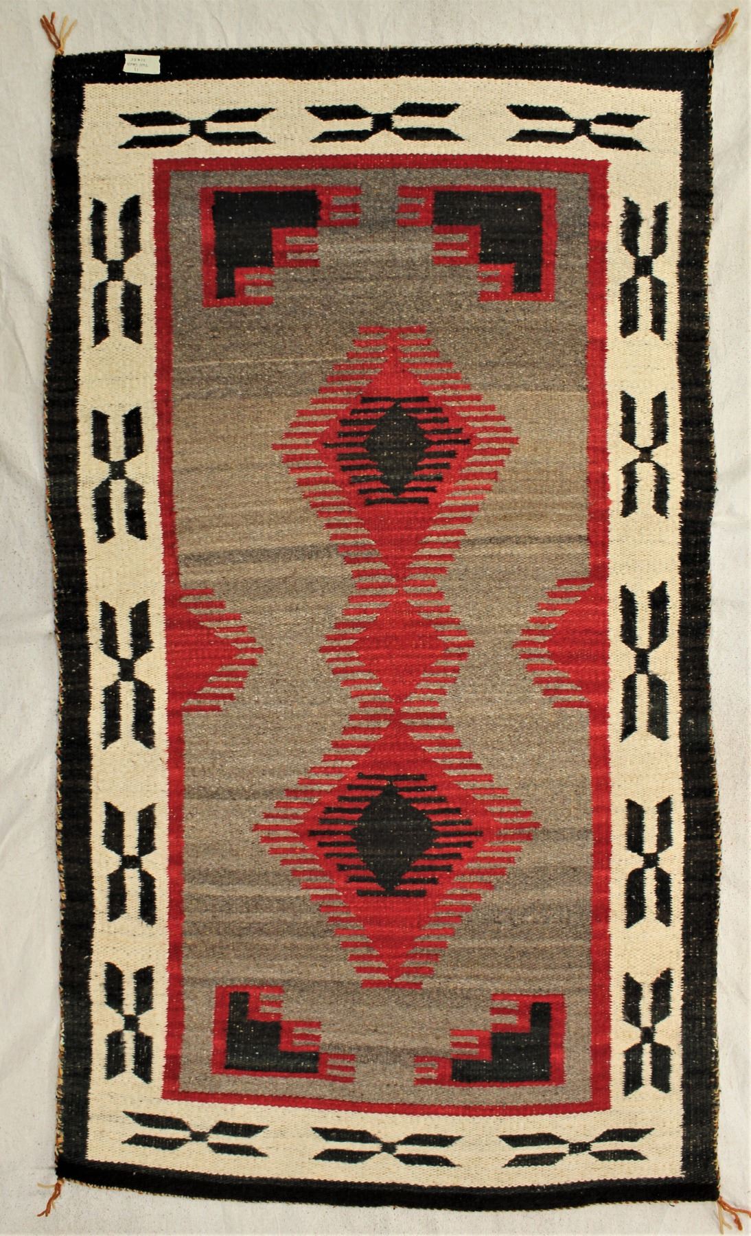 An exceptional and rare rug with a different pattern on each side. With strong colors, great condition and pattern. Measuring 32"x 55", circa 1930.