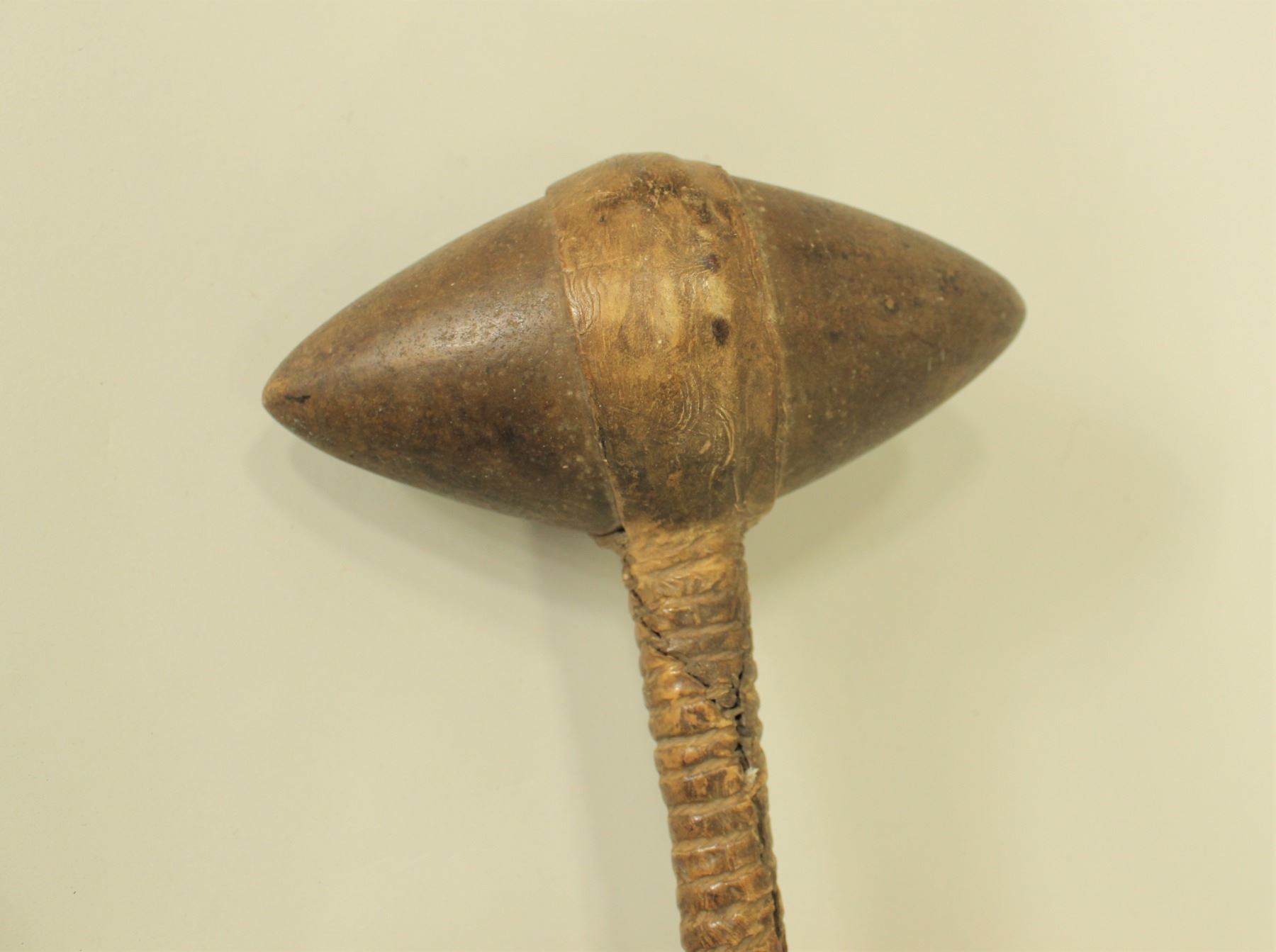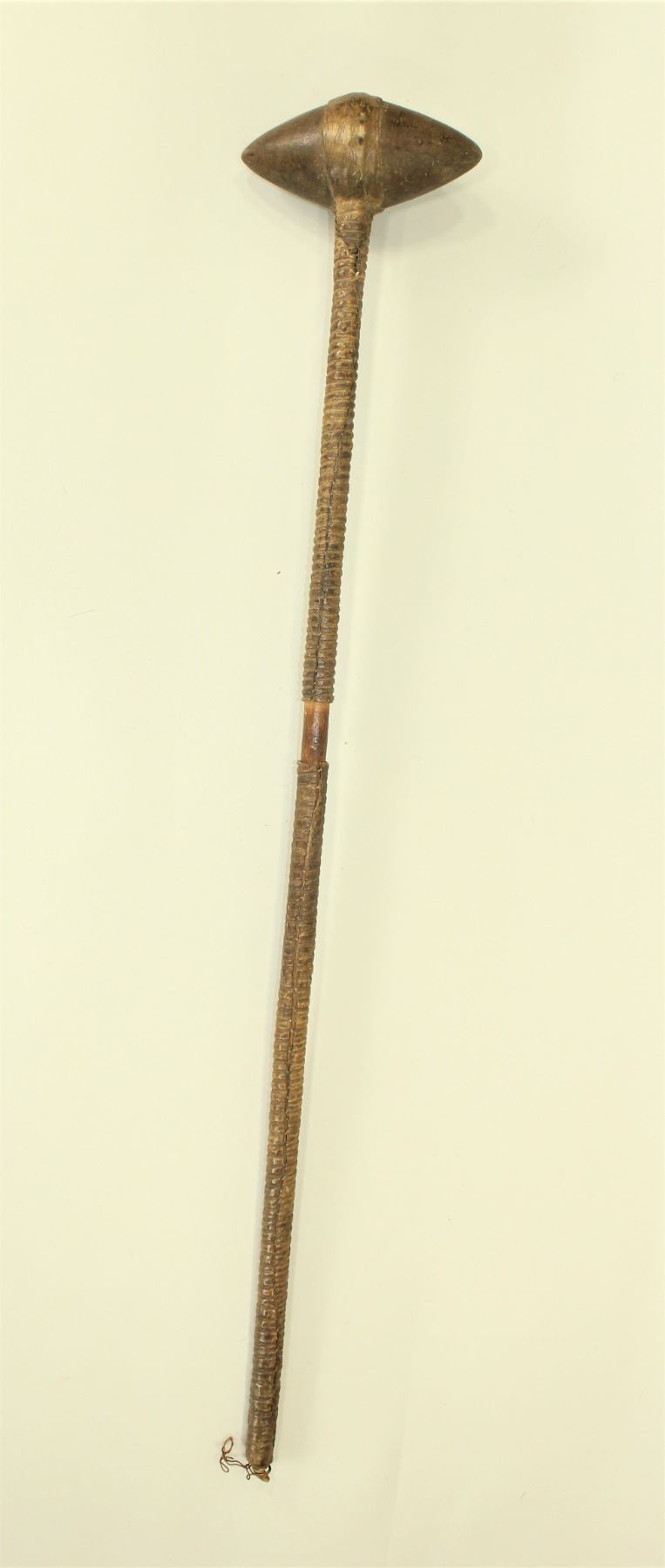 Fantastic early Plains Indian stone head club with wonderful patina and appeal with an extra long shaft, measuring 33".