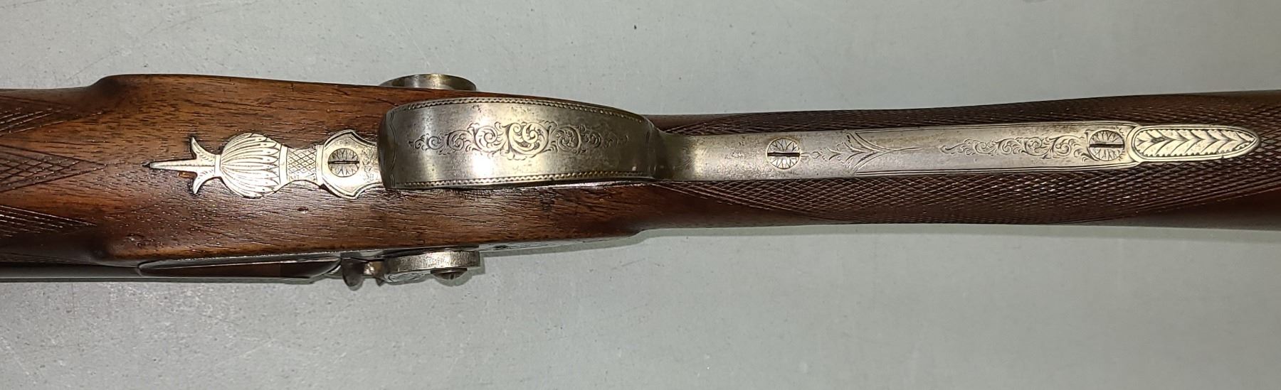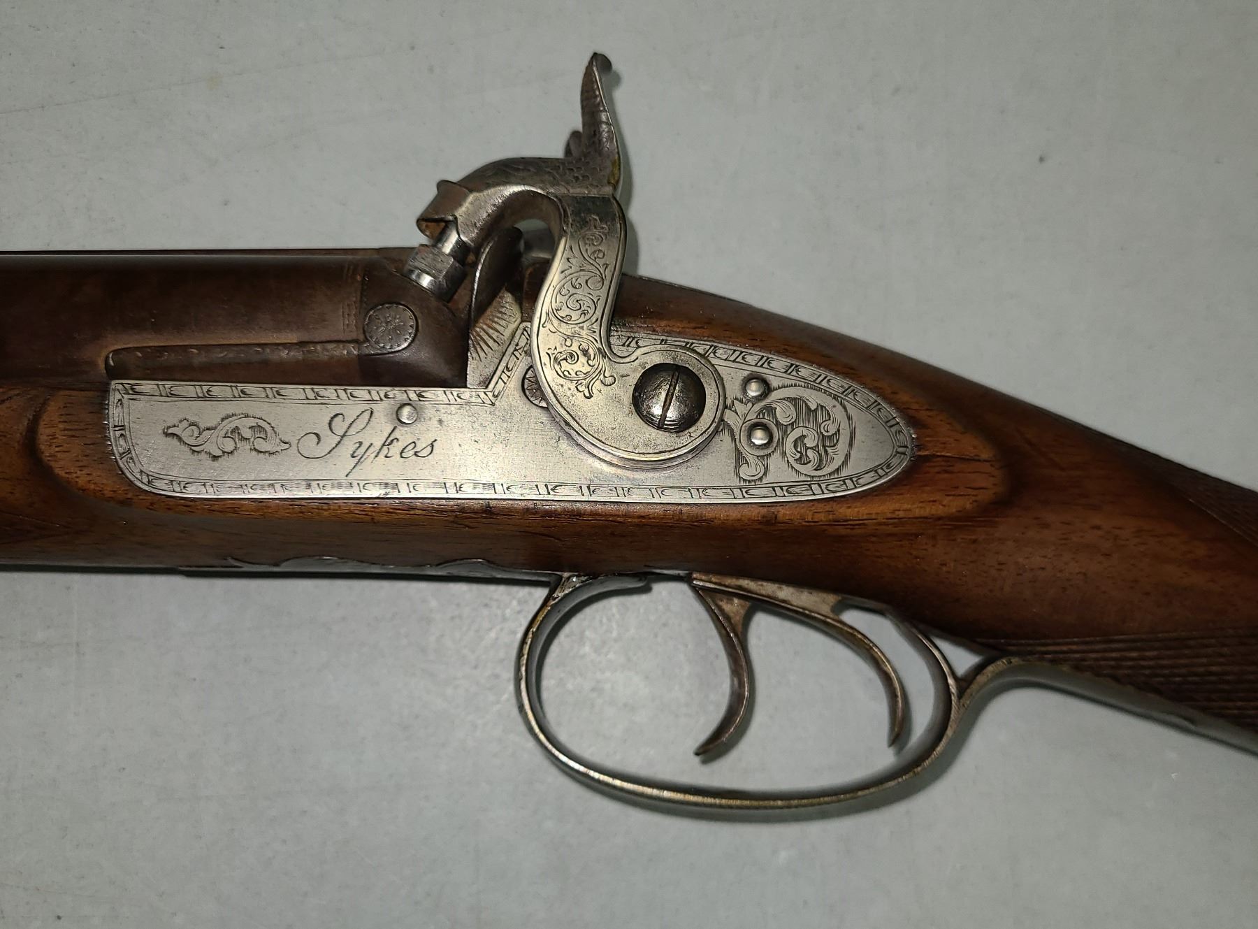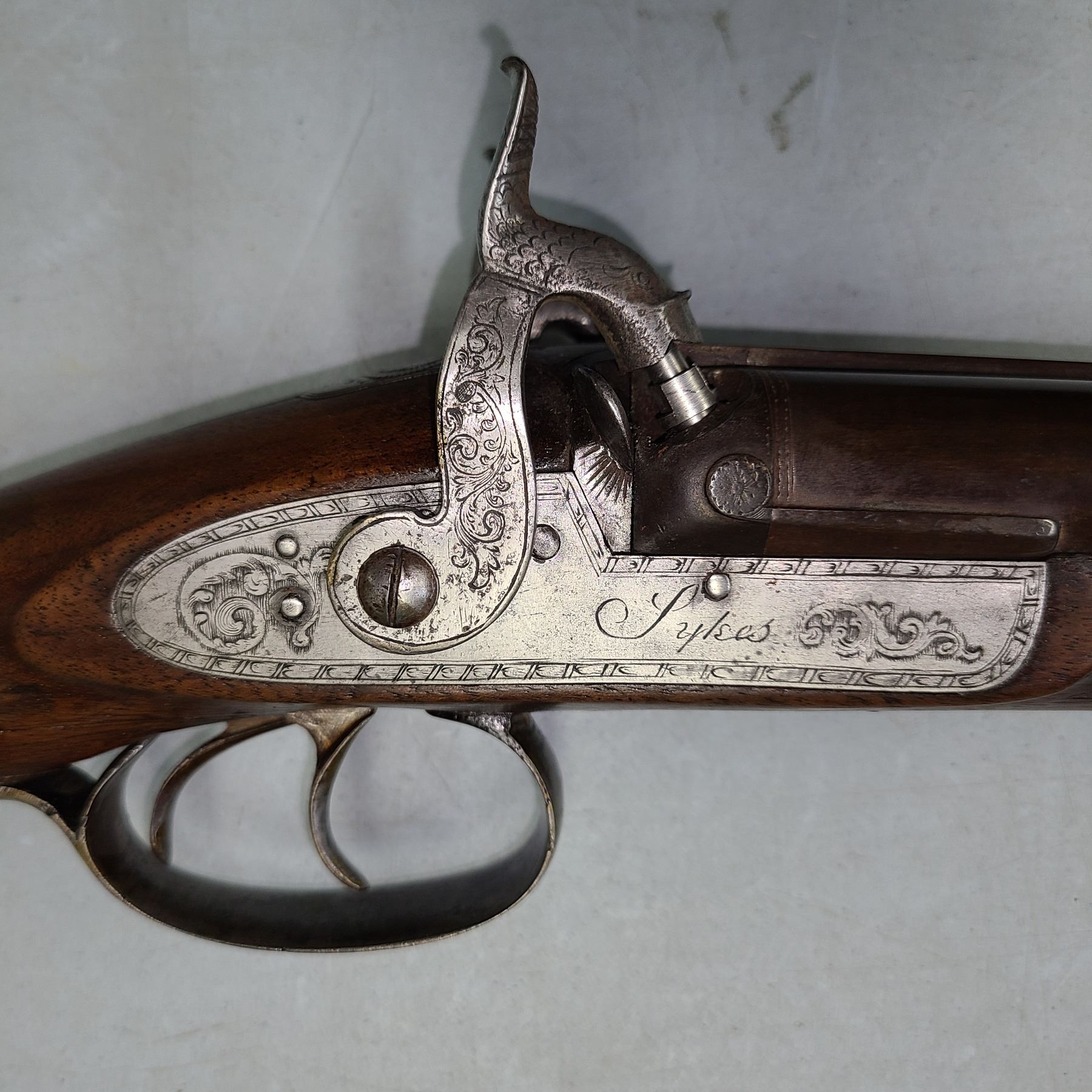 dip-tailed border engraved locks signed SYKES, engraved cocks and trigger