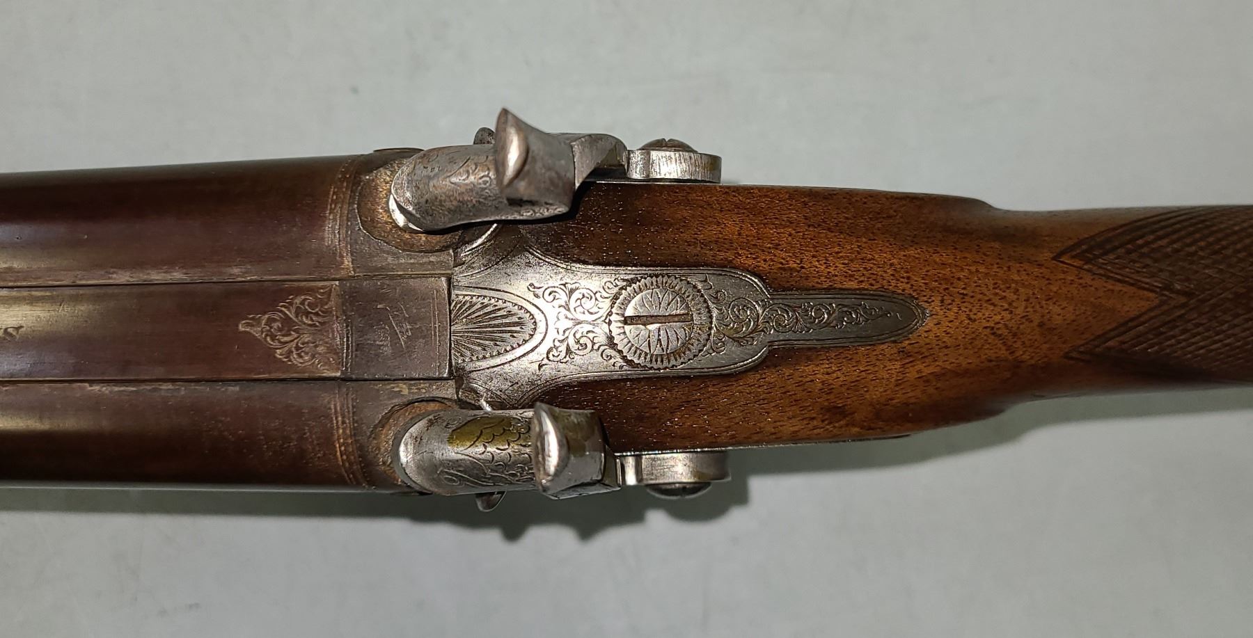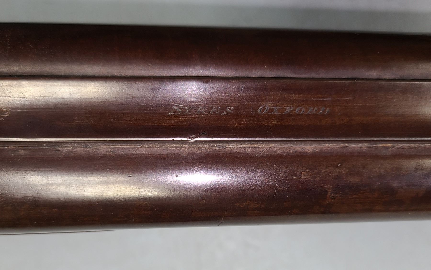 23.5in. steel side-by-side barrels, the top rib signed SYKES OXFORD along top rib.