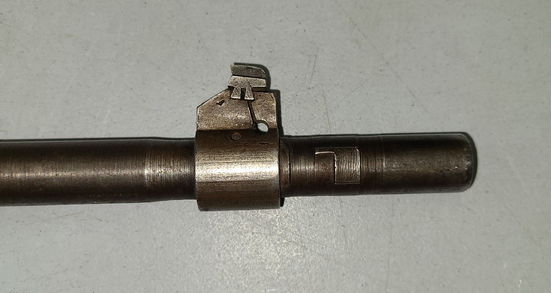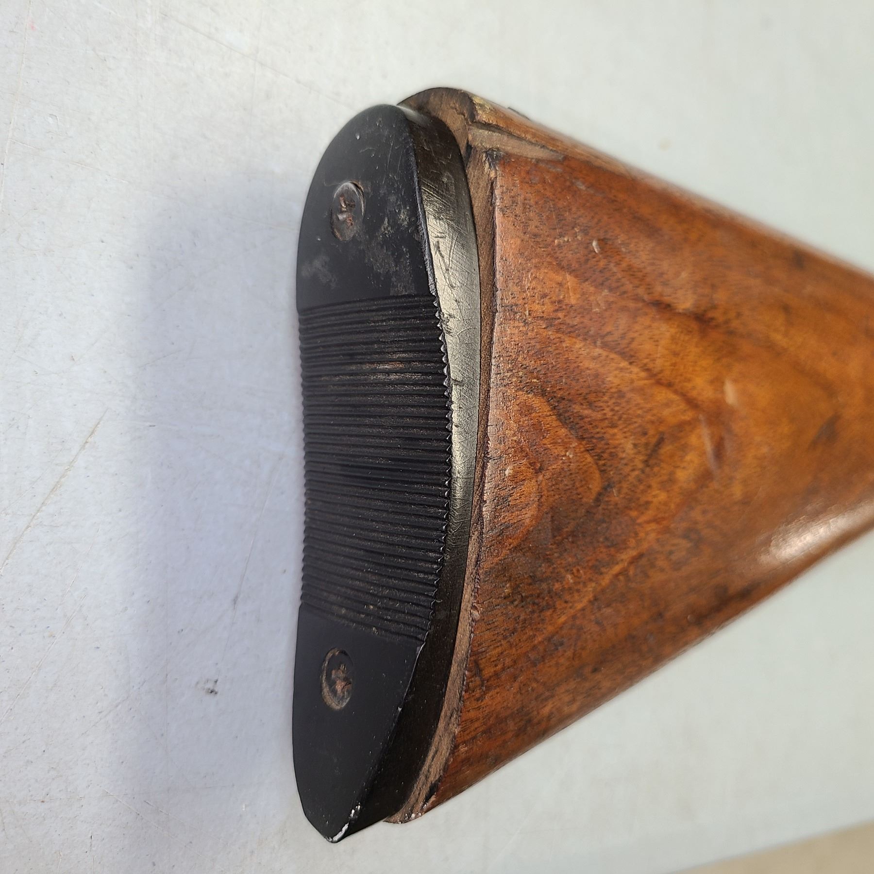 Has full length 25.5" long barrel. But plate has been changed to a black plastic one.