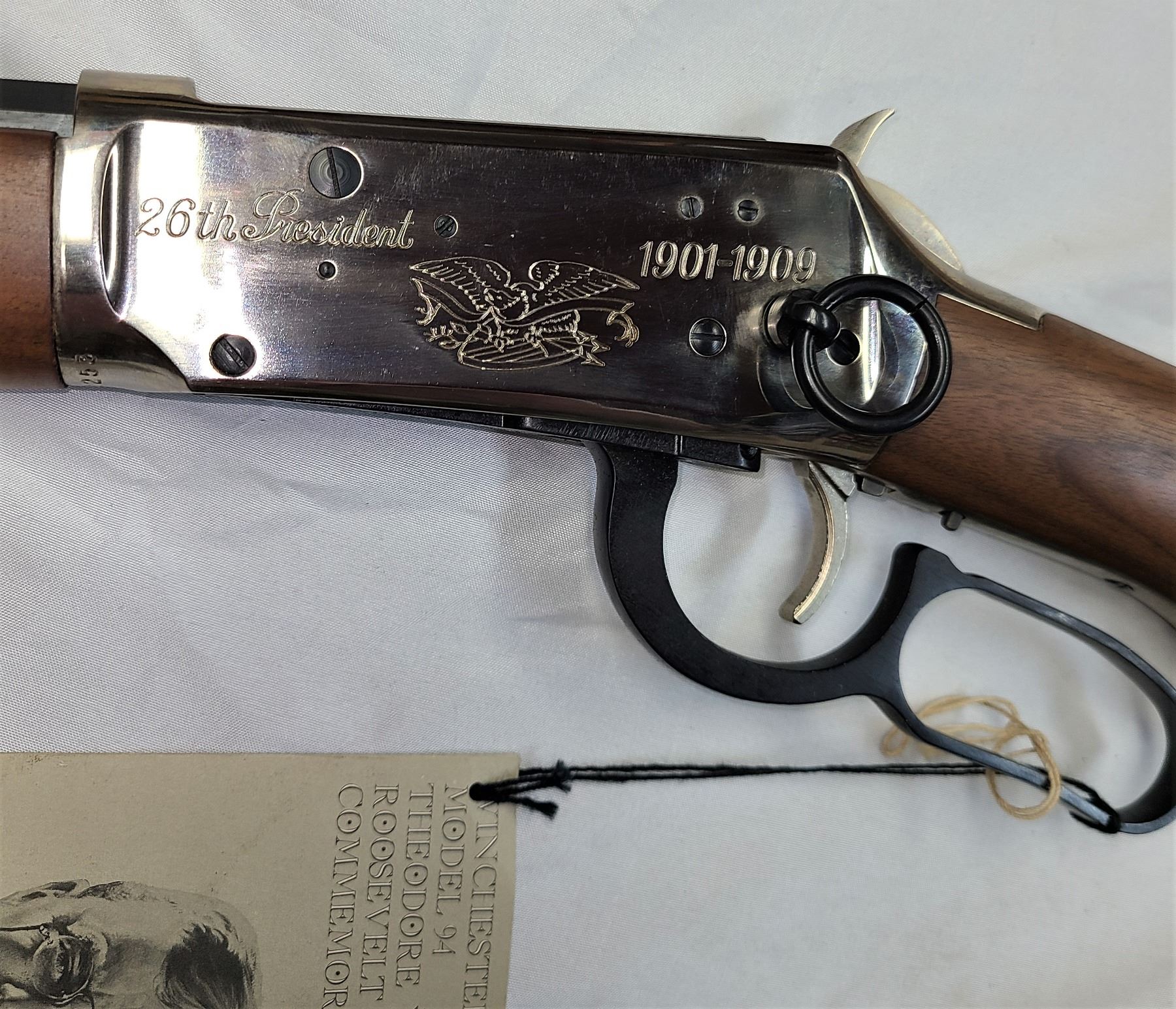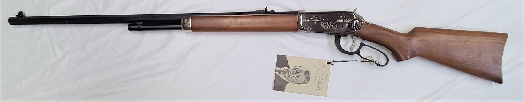 Left side of receiver engraved with American eagle, "26th President" and "1901-1909"