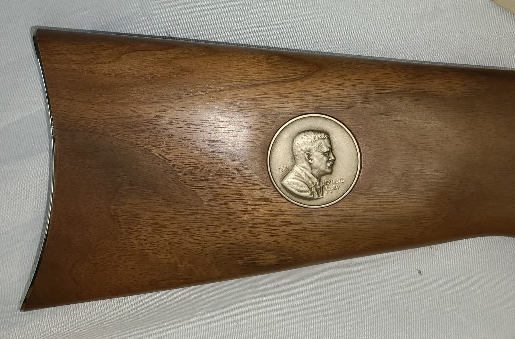 Right side of buttstock has Theodore Roosevelt medallion.