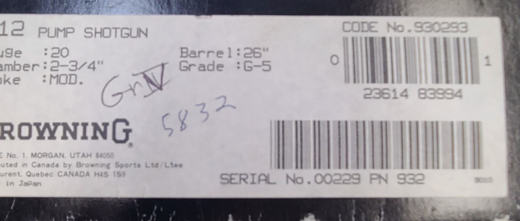 Browning Model M12 Grade V Premium Pump Shotgun 20 ga - MINT in Orignal Box