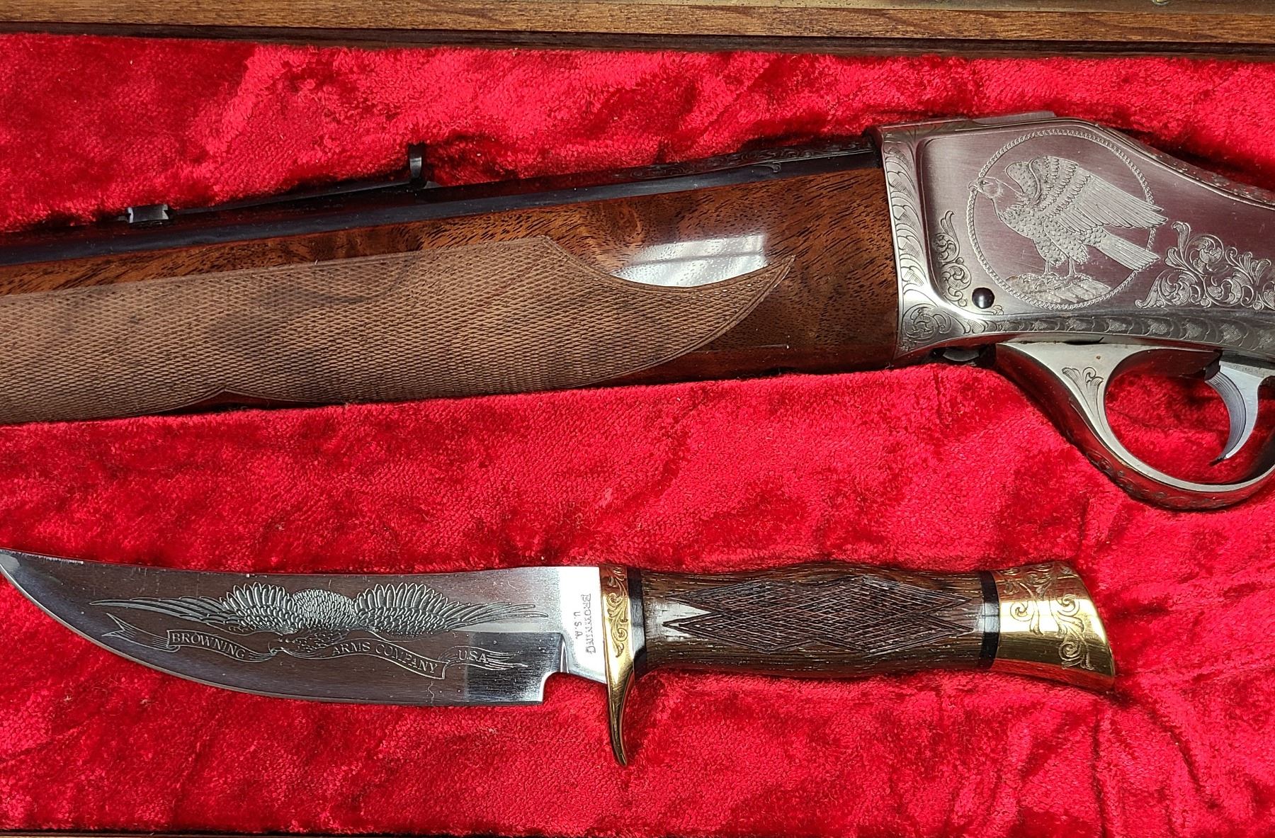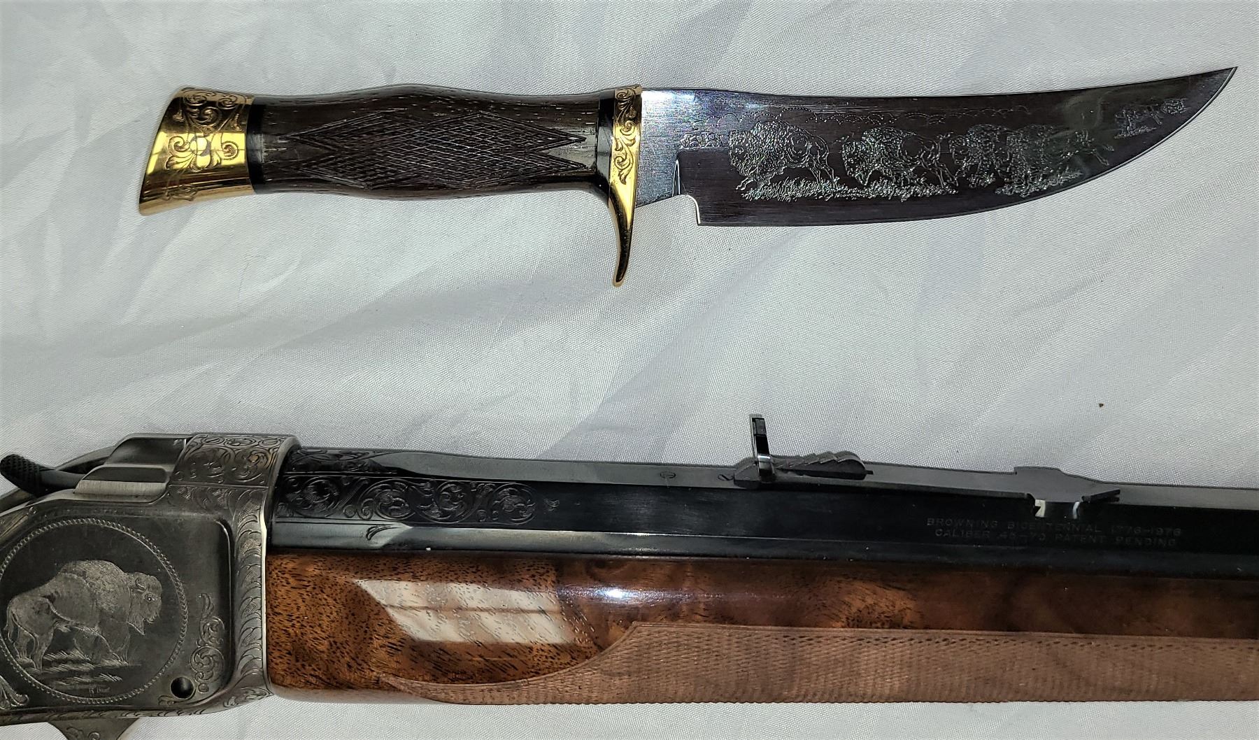 .45-70 CALIBER BICENTENNIAL SET - RIFLE AND KNIFE W/ WOOD