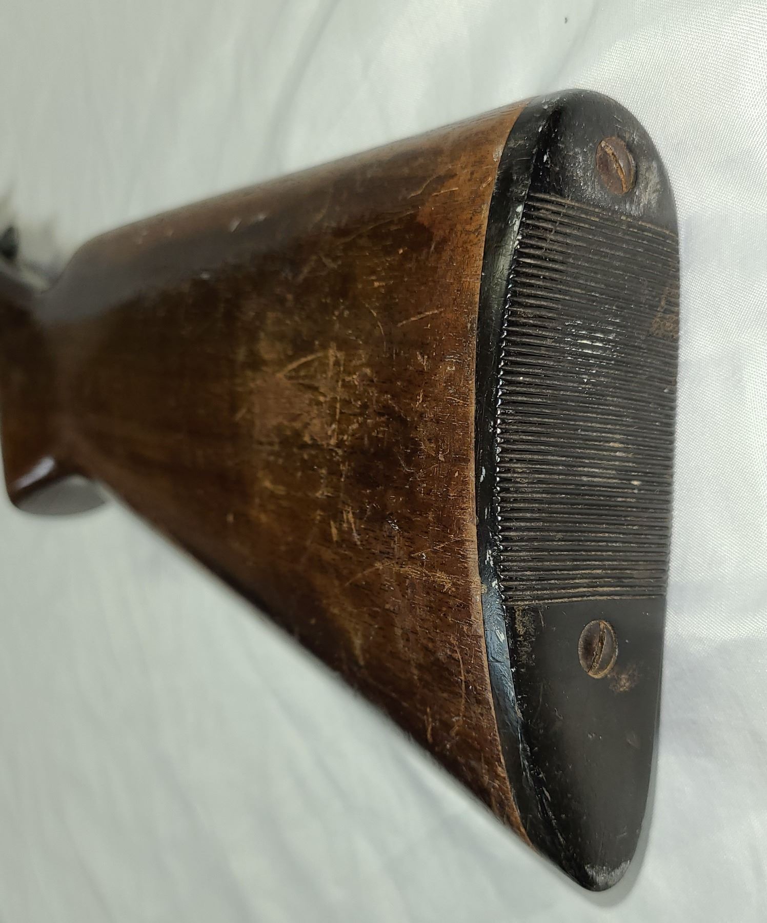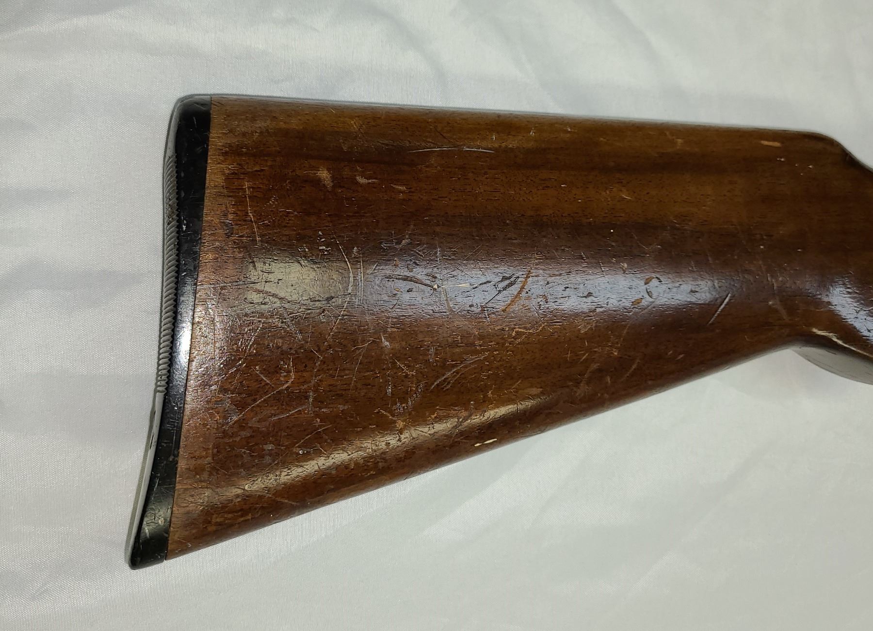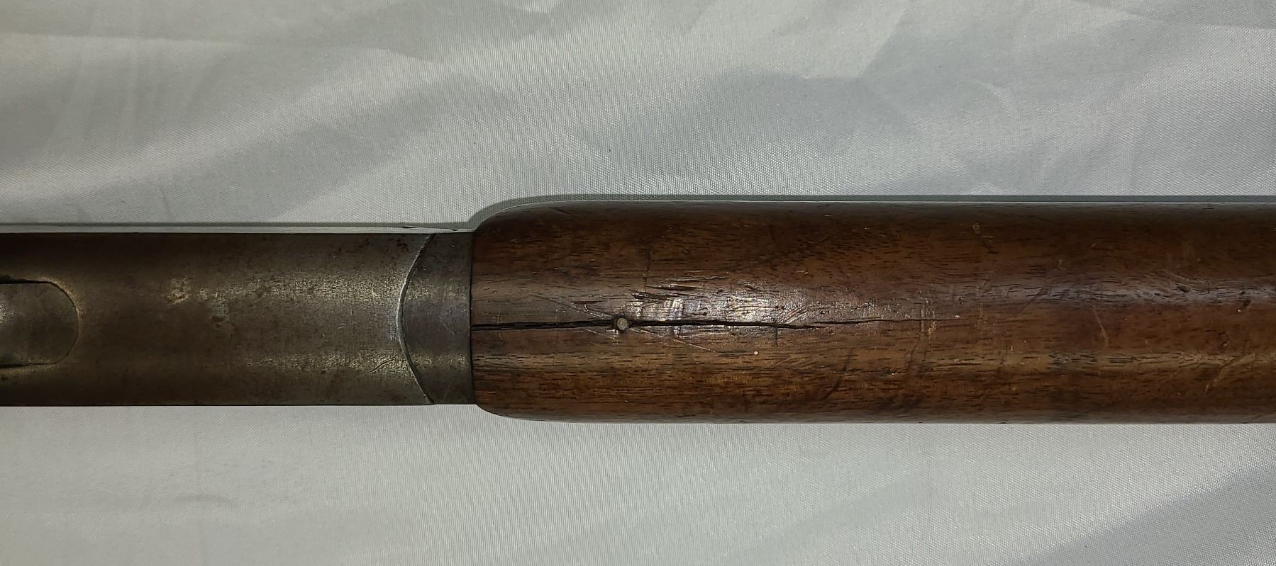 The wood is very sound showing 80% original finish.- Foregrip has a 3" crack in