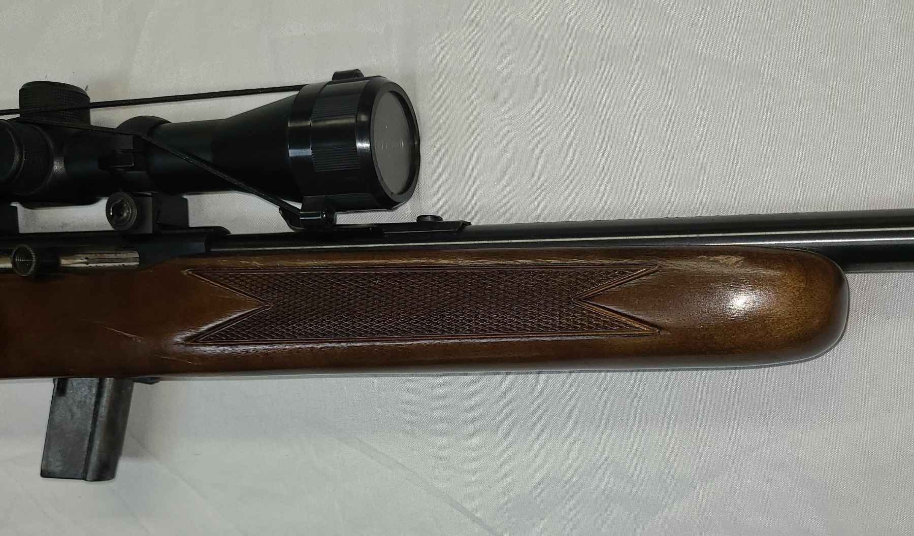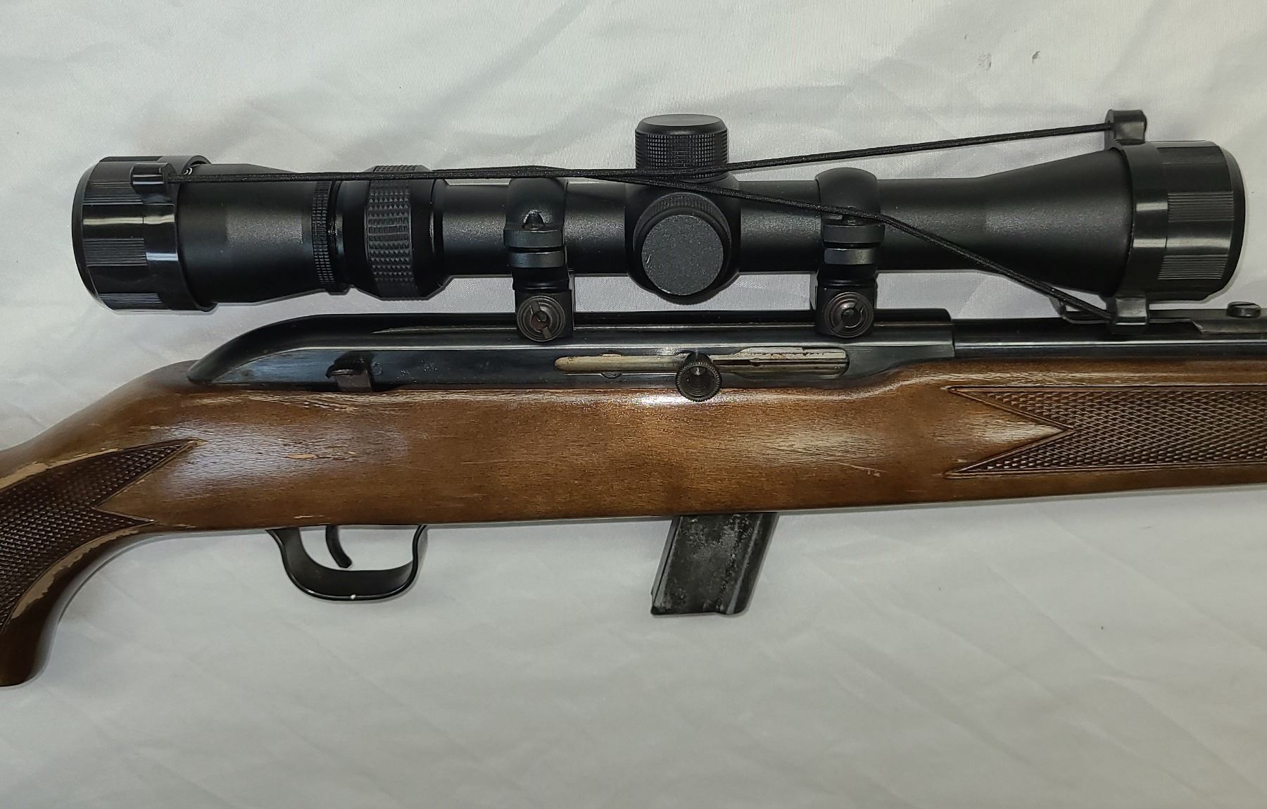 Comes with a nice clear 3-9 x 40 Tasco Scope - Still has original front and rear