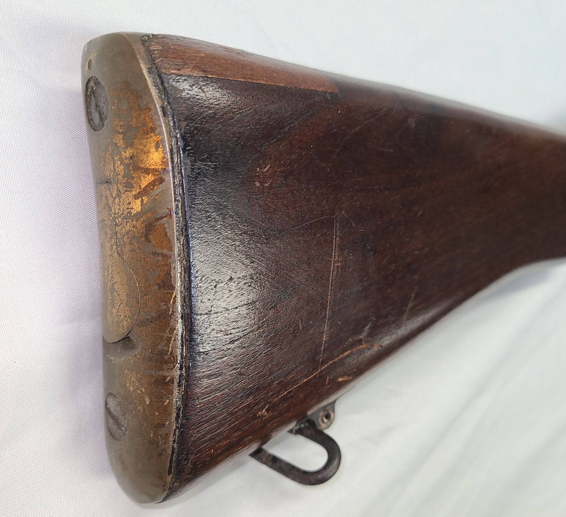 Has 25.5" long barrel. Brass plate and Peep sights.