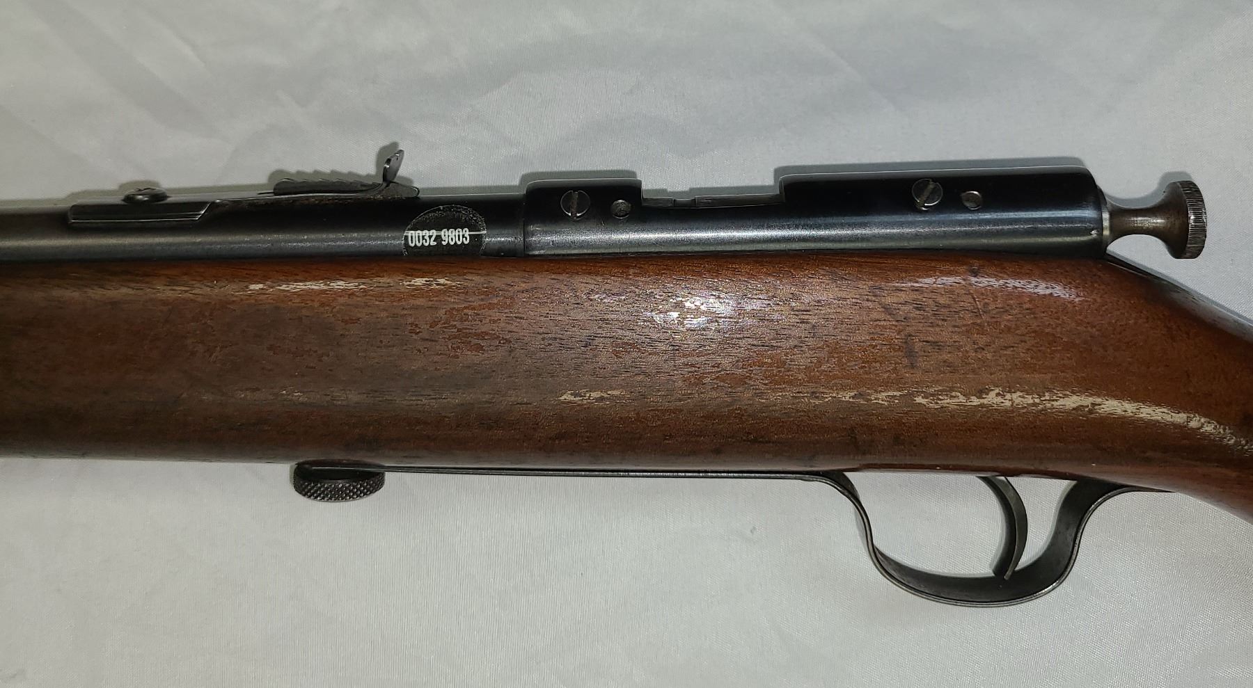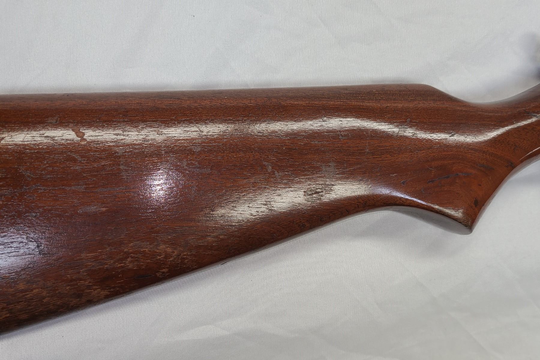 THIS LITTLE TUBE FED BOLT ACTION HAS A 24" BARREL WITH A GOOD BORE.