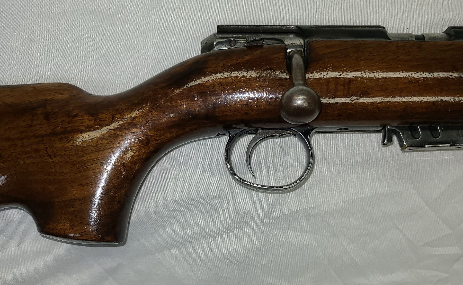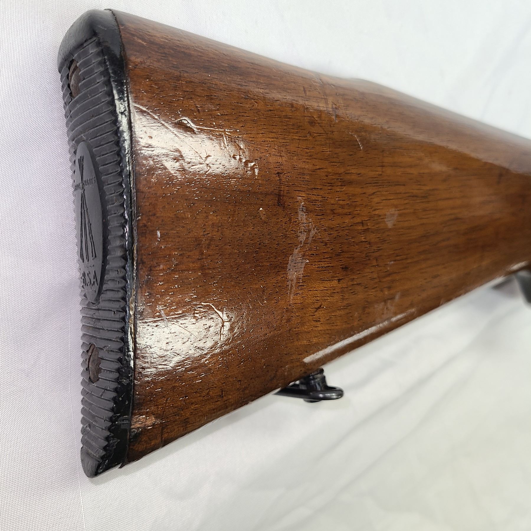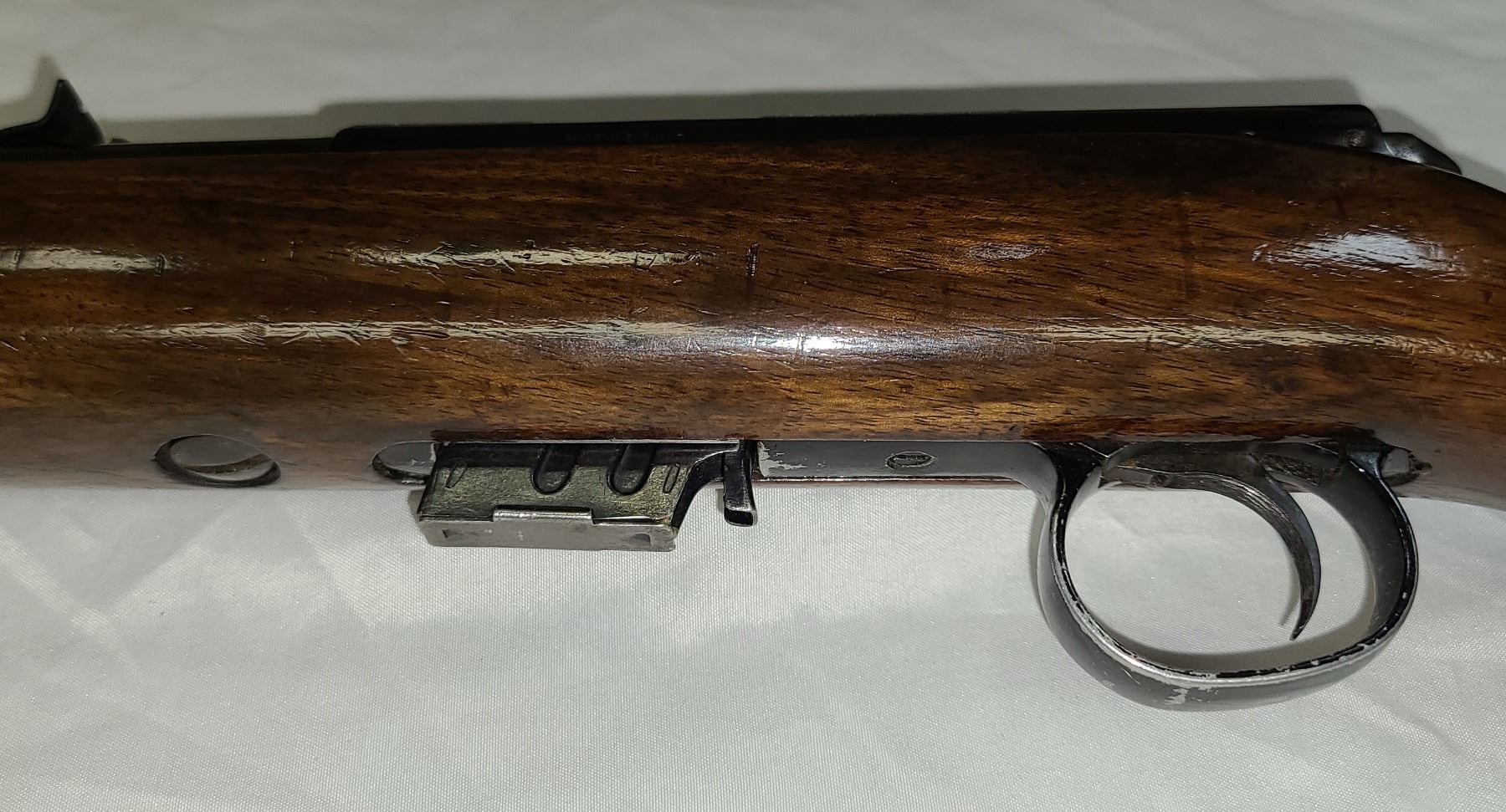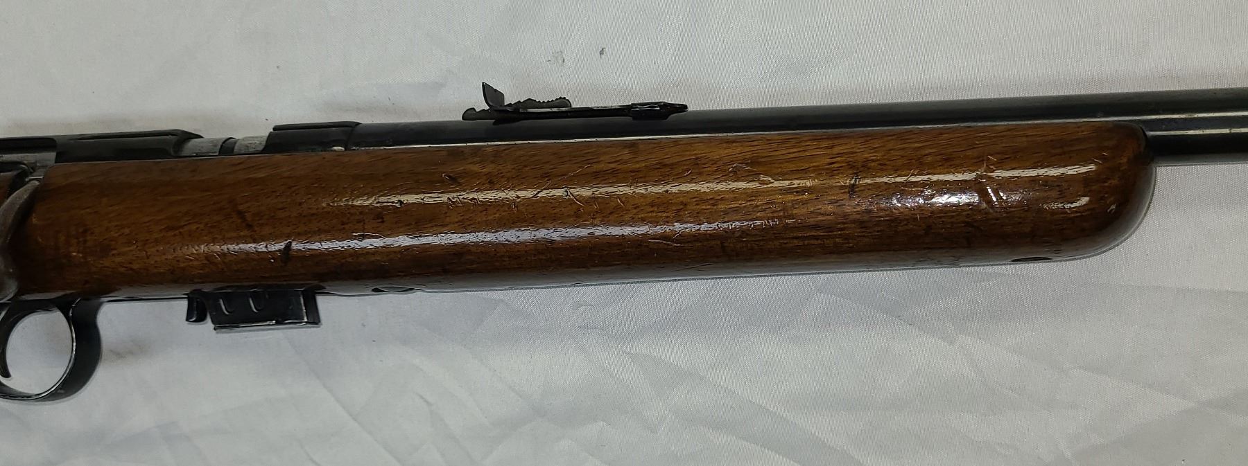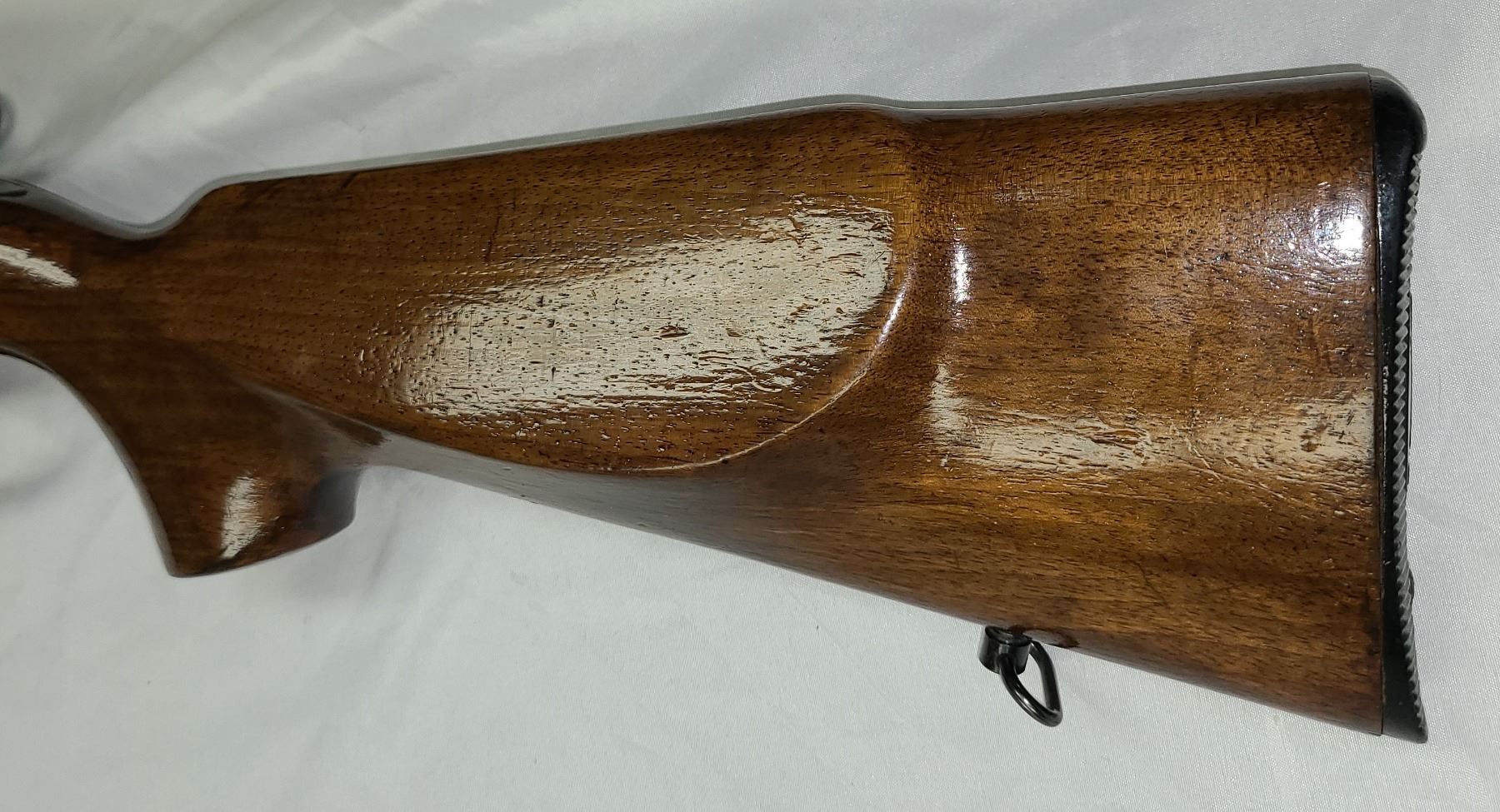 Wood has a few dents and scratches but Bluing is excellant !! Has been revarnished.
