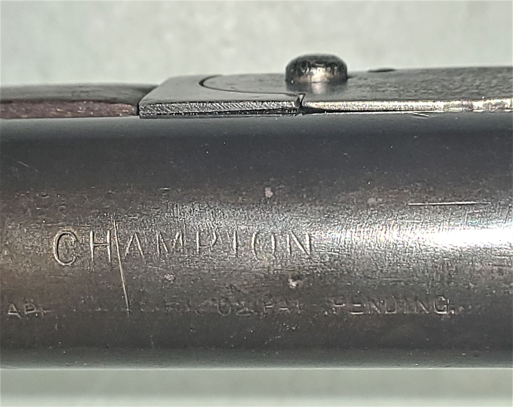 The top of the barrel says "CHAMPION" in all capital letters and underneath that it