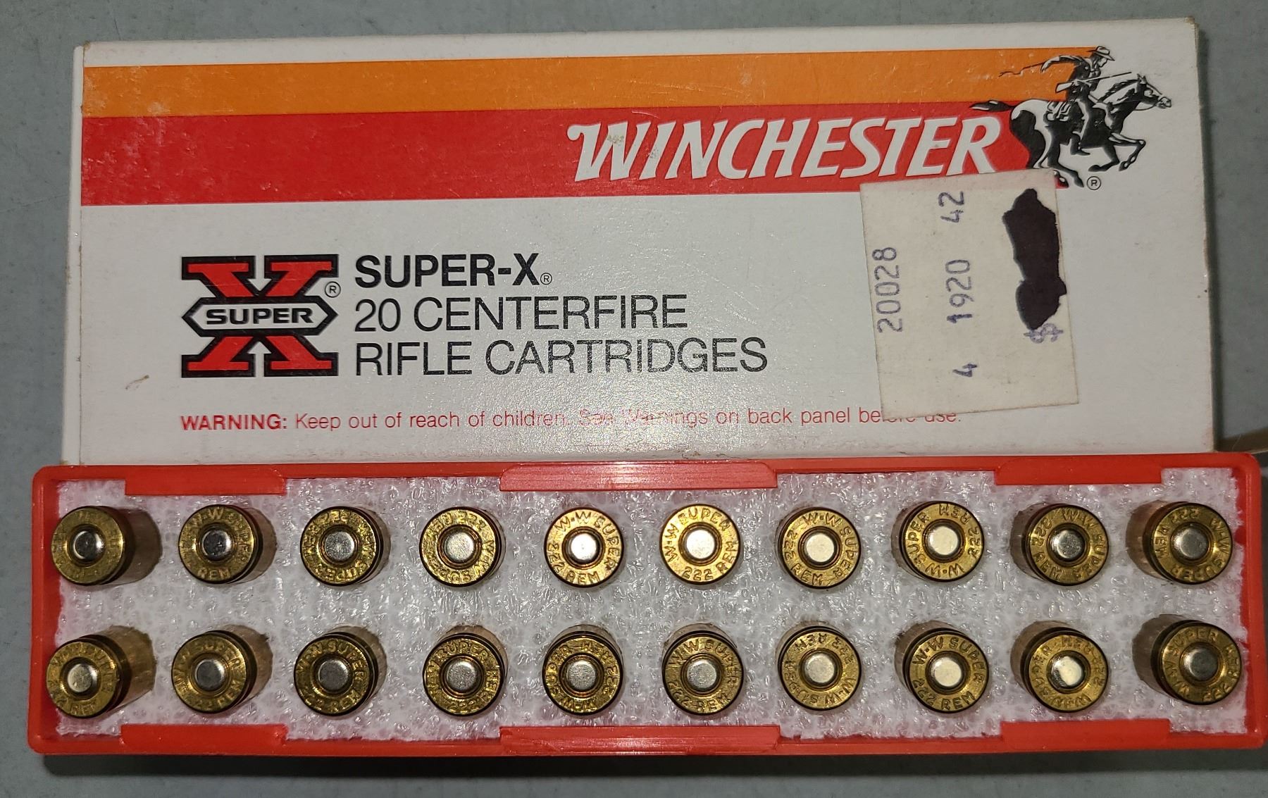 Lot 148 222 Rem Winchester Super-X 50gr Pointed Soft Point 20 rds Ammo