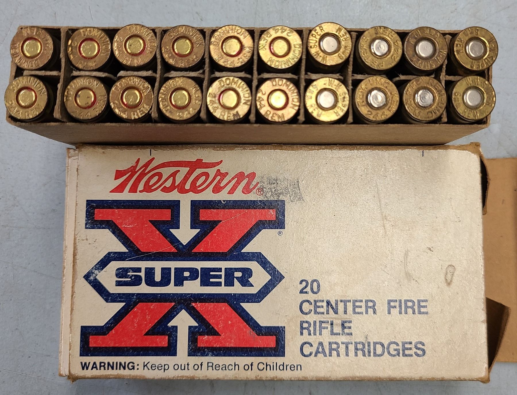 , "244 Rem cartridges", which was manufactured by the Dominion Cartridge