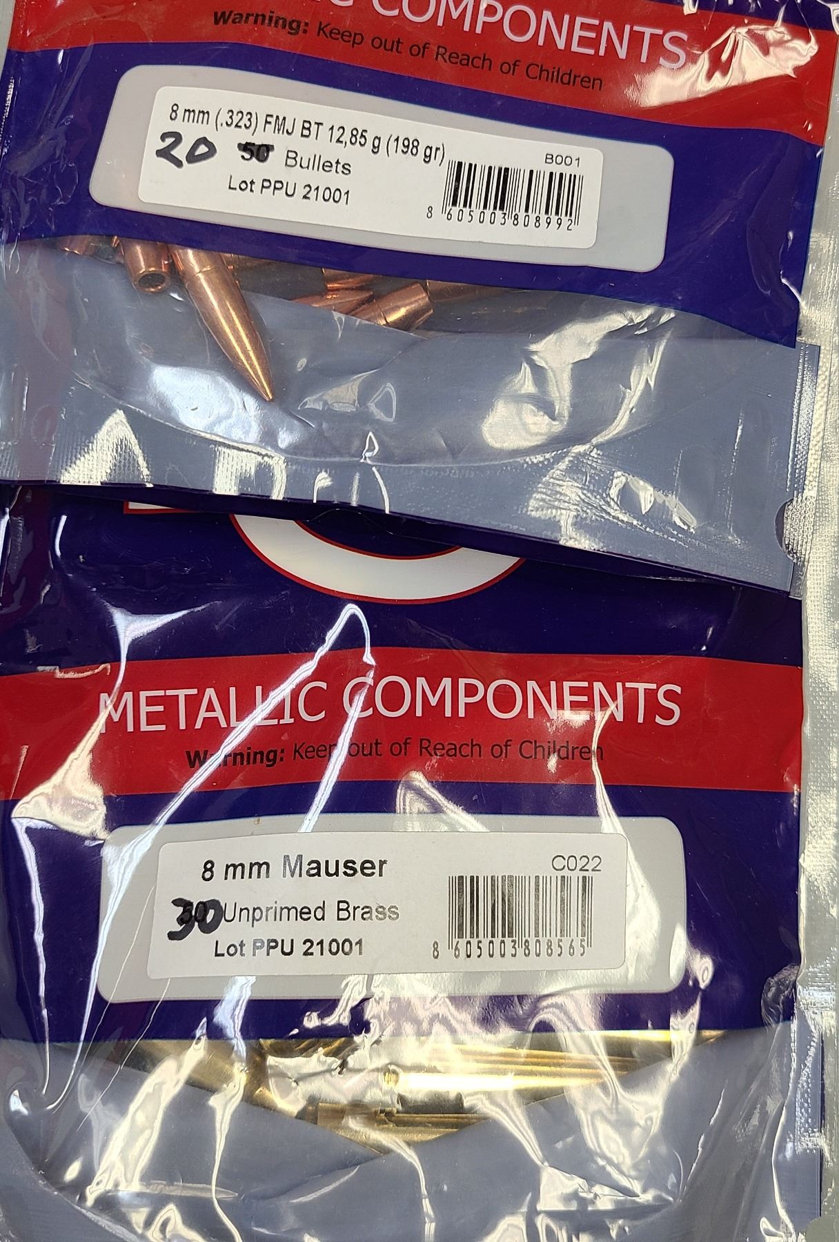 8 mm PPU NEW Brass (30rds) & 198 gr FMJ Bullets (20rds) - NEW