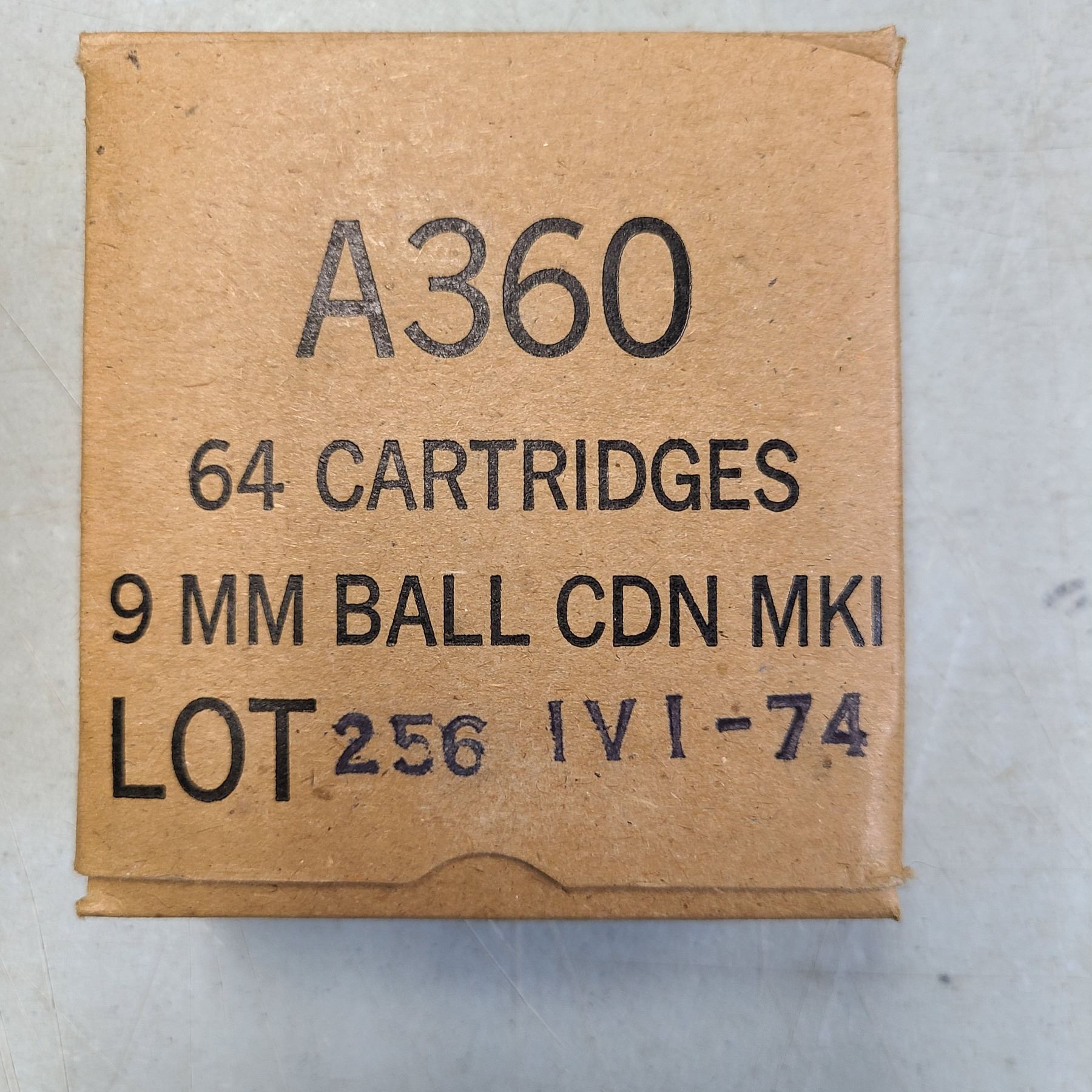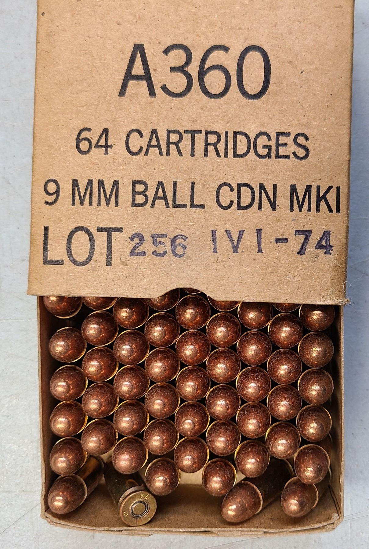 Lot 180 9 mm Ball Ammo Canadian Military MK1 FMJ - 64 rds