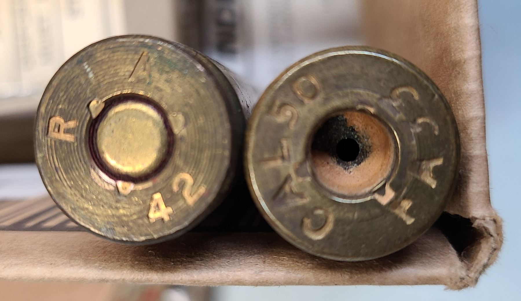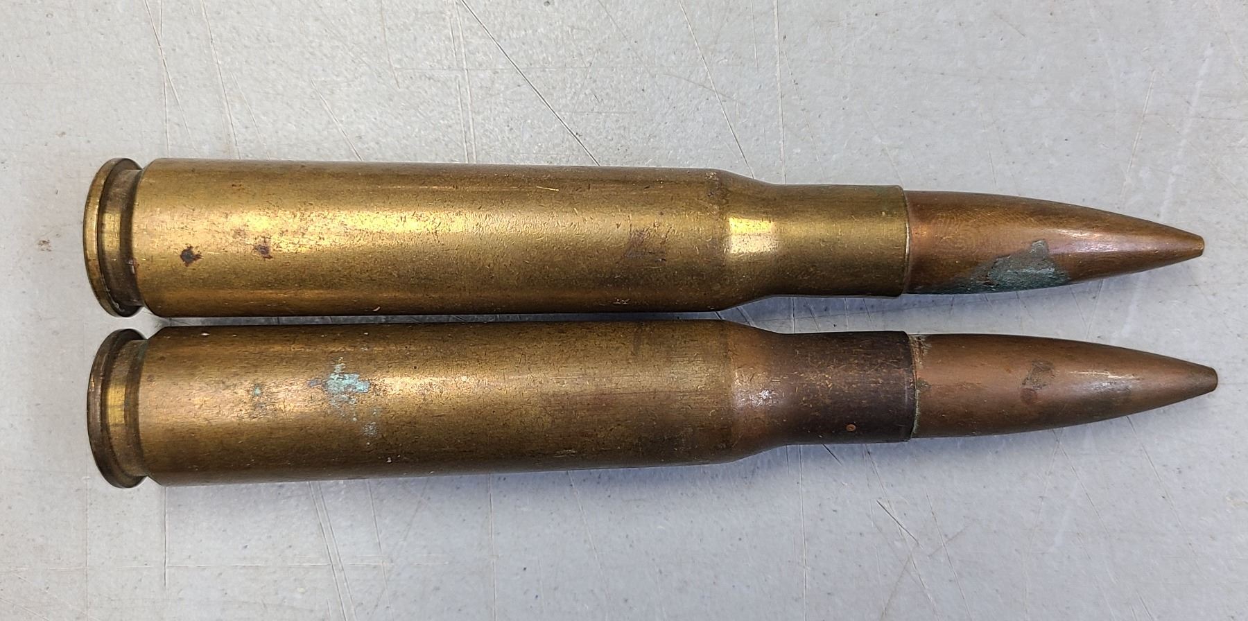 50 Cal Ammo - 2 Rounds - 1 x Live 1942 Military Issue - 1 Rd Dummy