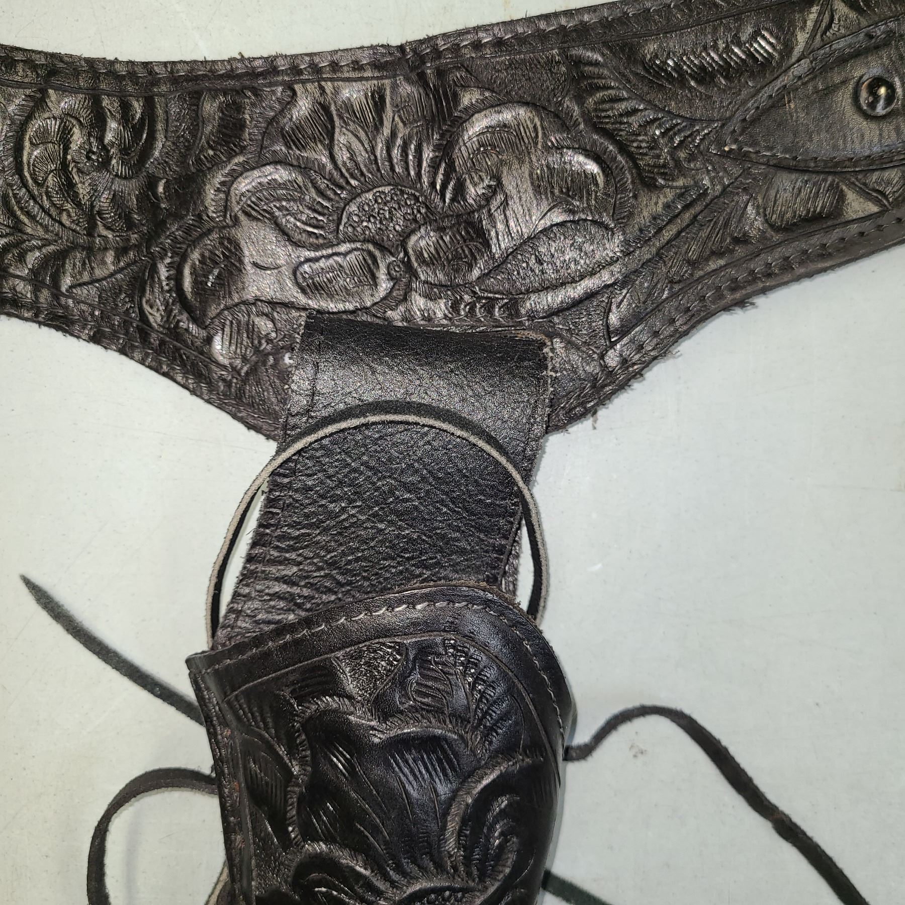 Beautiful Highly Tooled Thick Leather Gun Belt - Right Hand - would suit a large frame