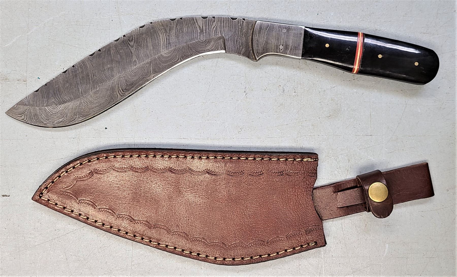 Lot 248 Kukri Knife in Leather Sheath - Large Damascus Blade Hand Made Knife