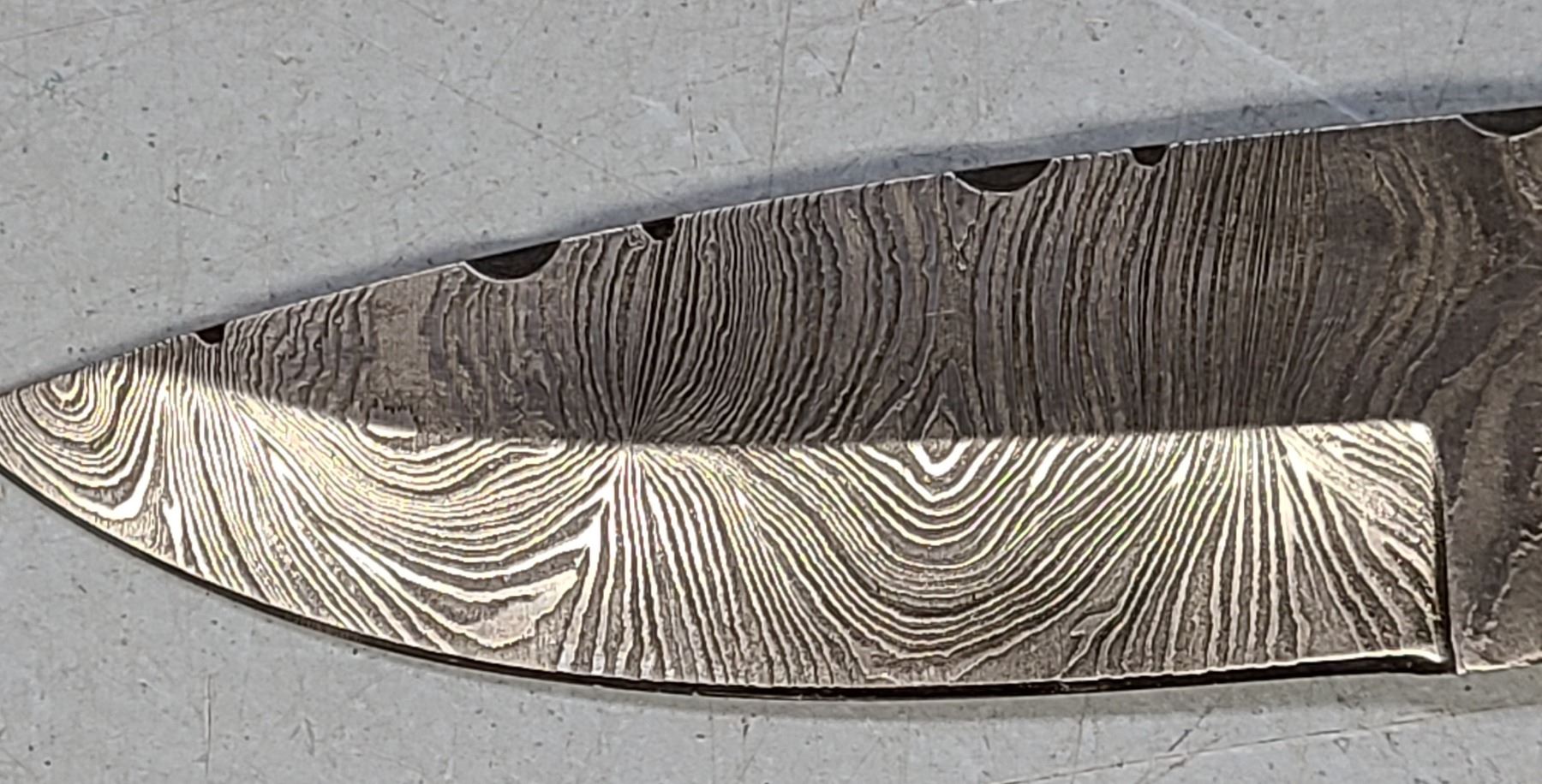Damacus blade measures 3" long with oveall length 8"- This is full Tang one Peice