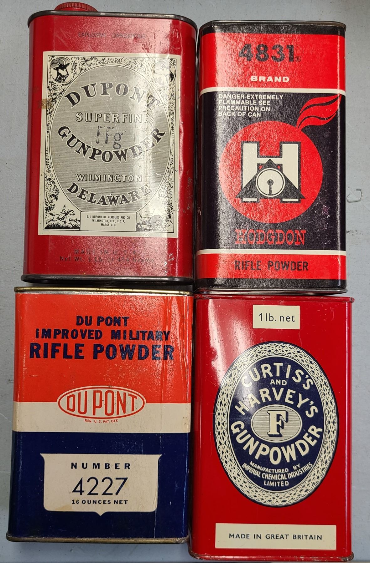 Vintage Powder Tin Lot - Hodgon, Curtis & DuPont - 4 Collector Tin