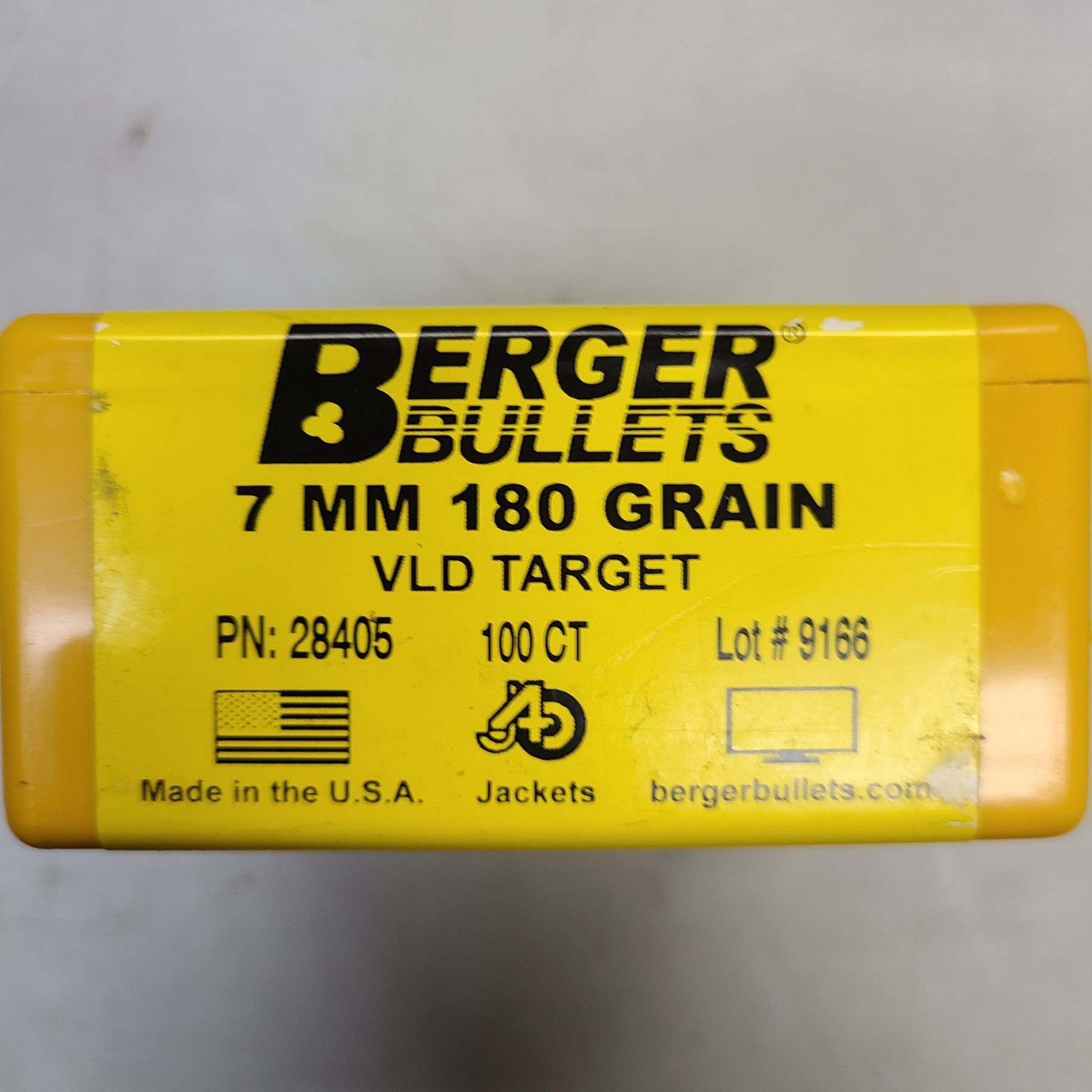 Lot 258 Berger 7mm 180 gr VLD Target Bullets 100 rds - NEW