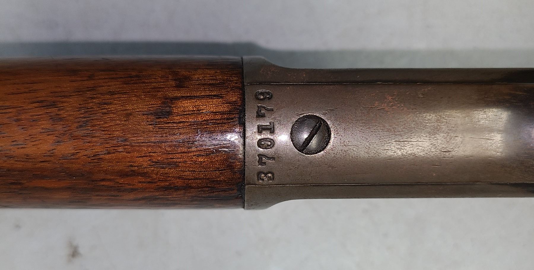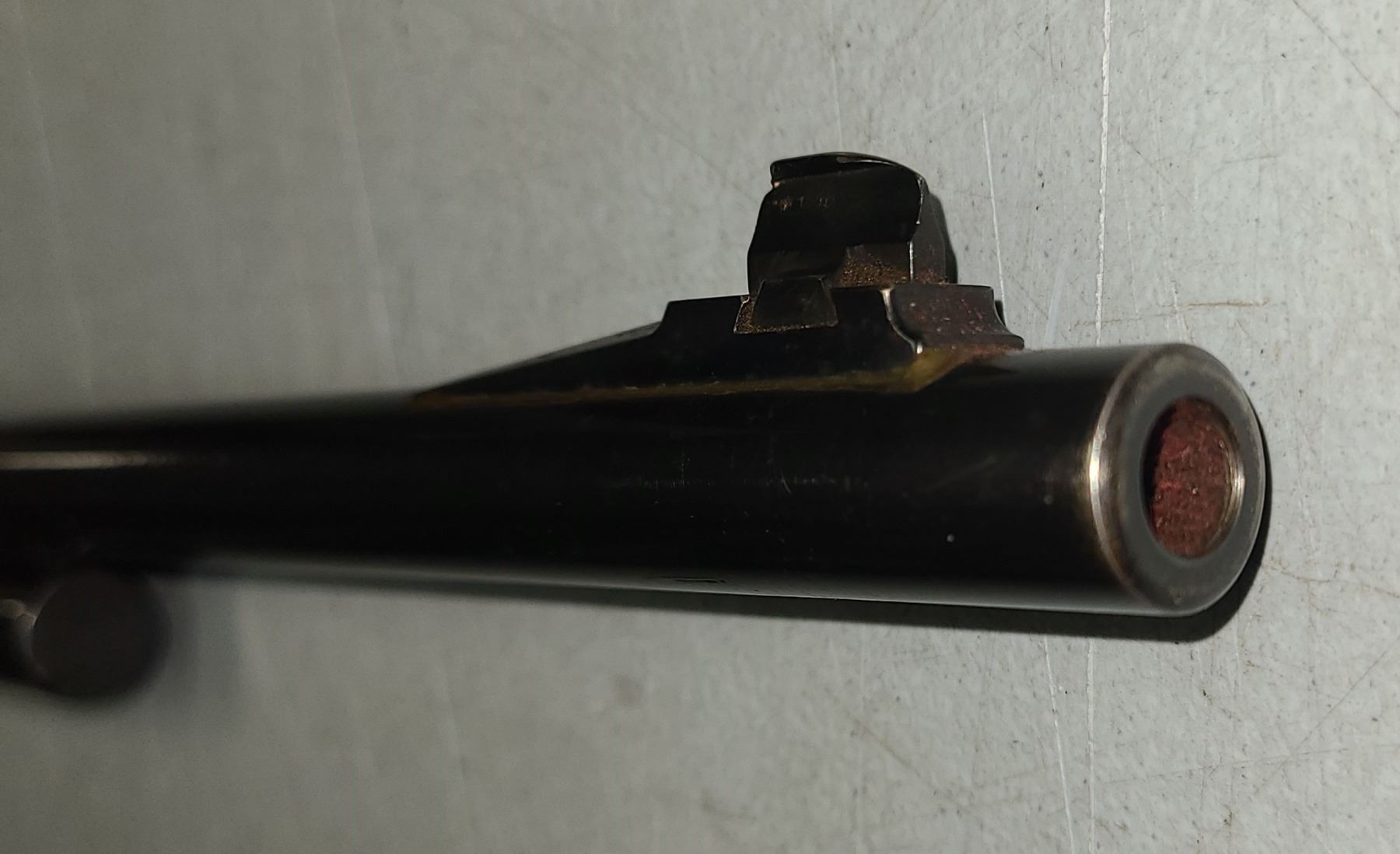 Barrel is 22" long and 1/2 Octagon / round - Rear sight is missing elevator.