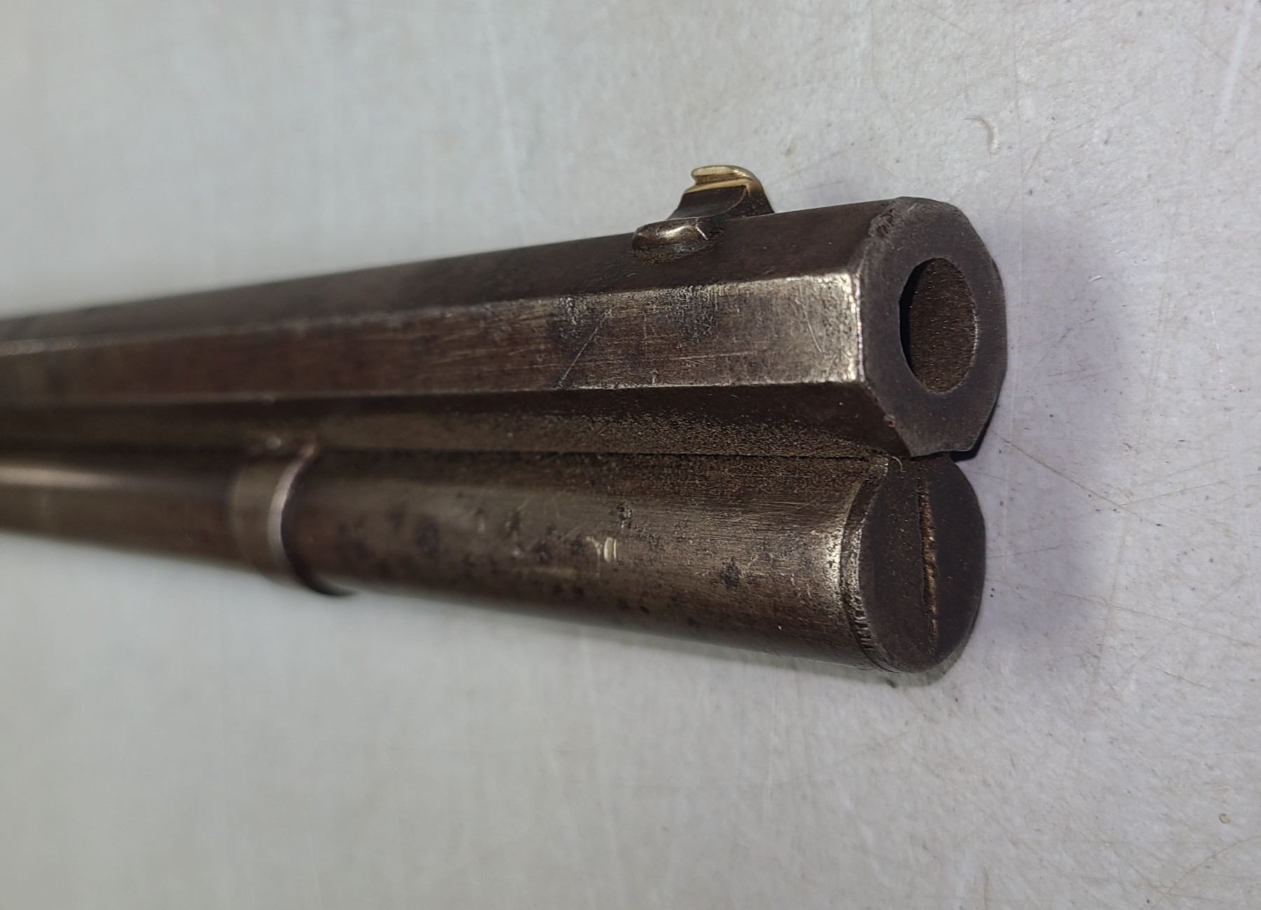 Octagonal Barrel is 28" long and very heavy . Bore is dark with rifiling evident.