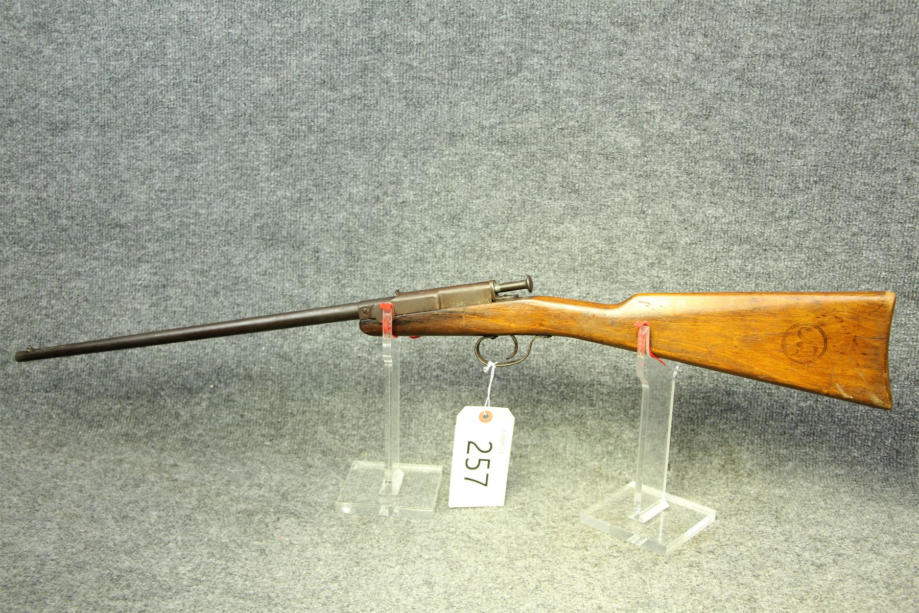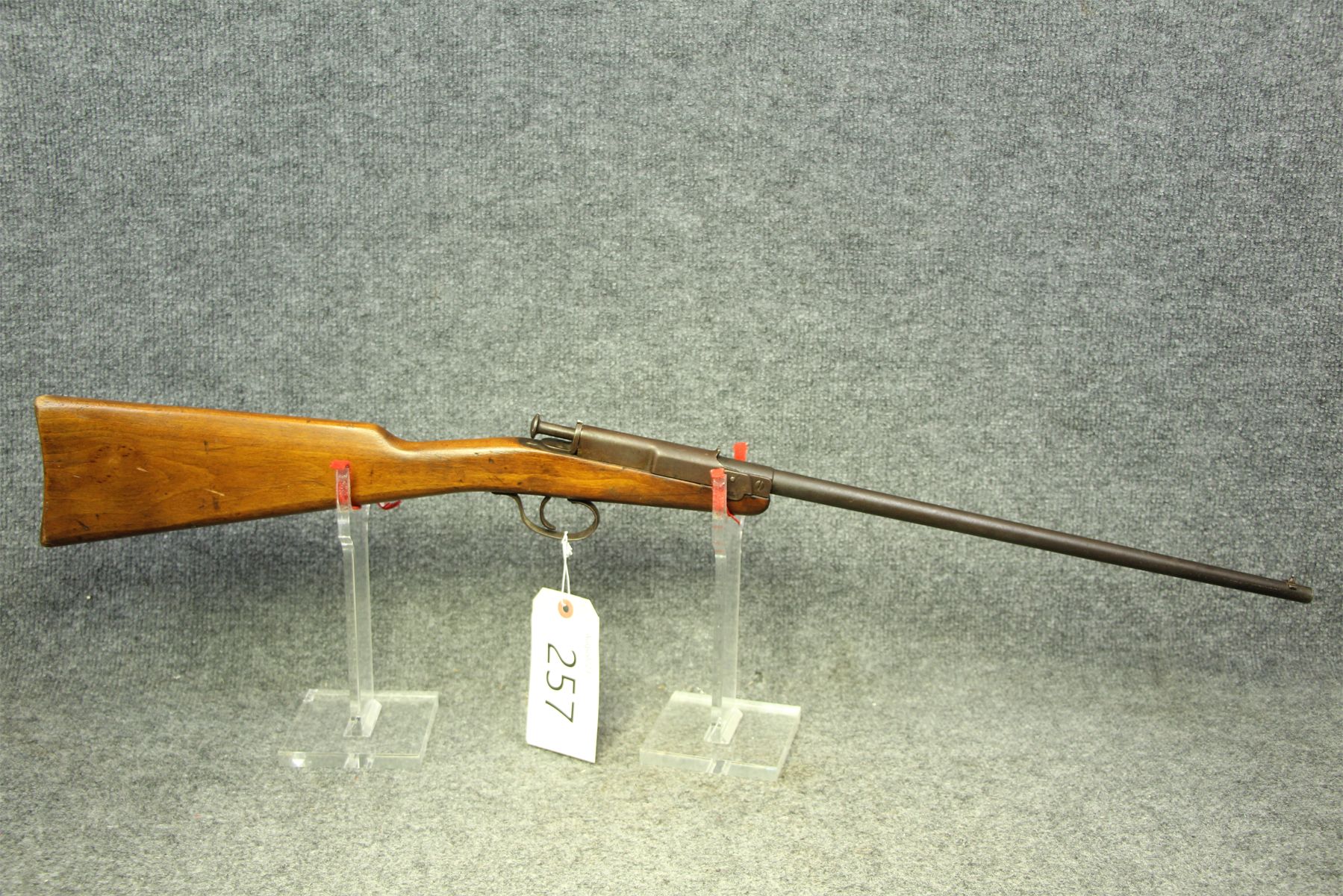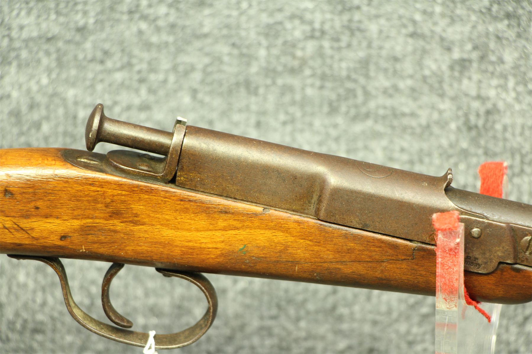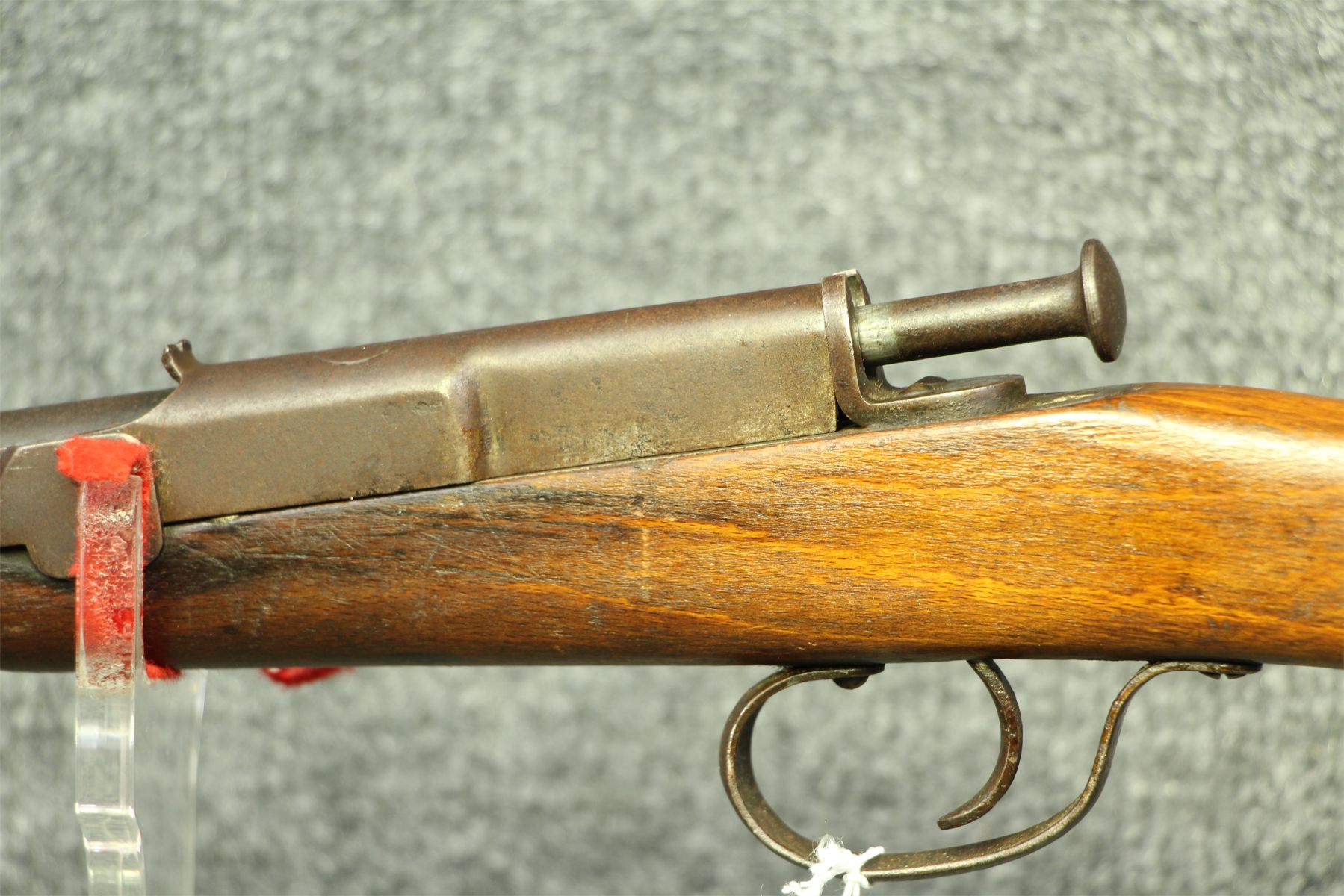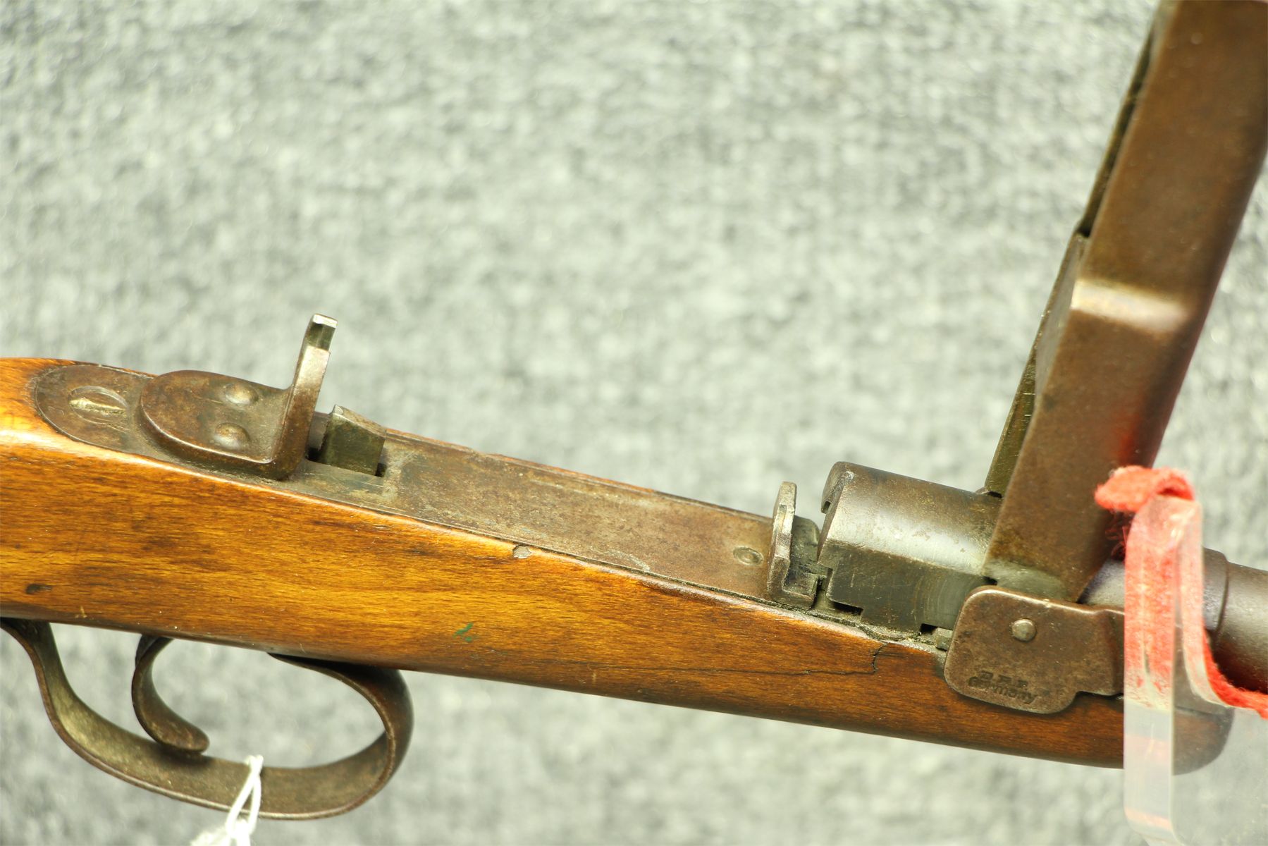 Interesting curio. Flip up receiver and block. Heavy pitting on the barrel. Stock in very nice condition.