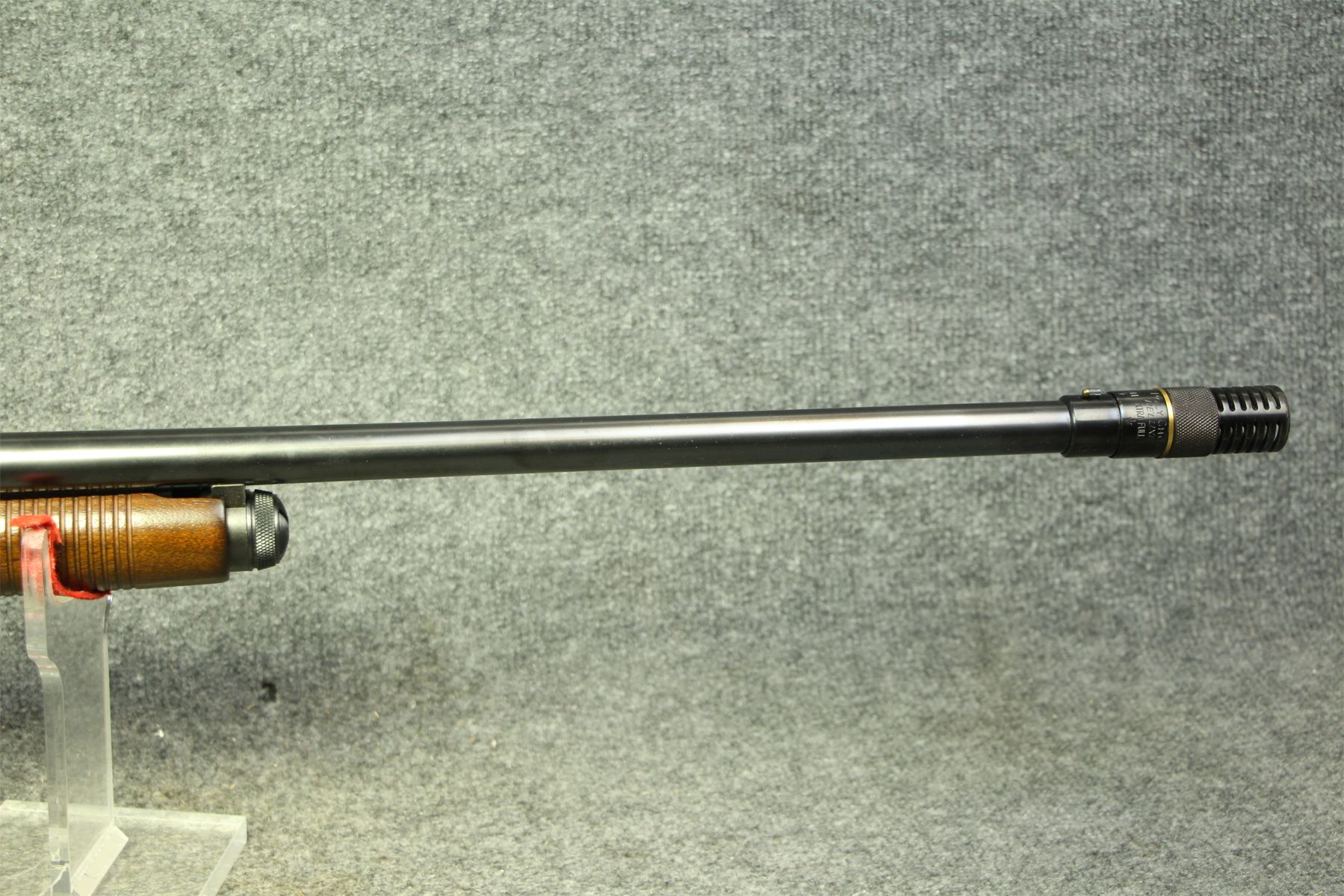 Comes with a fully adjustable Poly-Choke. Finish has only a few blemishes. A few handling scuffs on the stock. Age hardened and flattened recoil pad. Consider replacing.